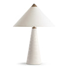 Make a cool geometric statement with the Mavis Table Lamp. This conversation starter goes bold with eye-catching shapes, from the tall tapered base to the conical lampshade. Mavis is crafted from resin, carved with a fine linear texture and finished in matte off-white. Antique brass accents complete the luxe aesthetic.