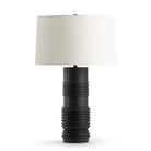 Sleek ridges are carved into the surface of the Rita Table Lamp, each line beautifully precise. This piece is crafted from sturdy wood with a silky black finish that allows the natural grain to really shine. A drum shade in off-white completes the neutral palette, ideal for contemporary and minimalistic themes.