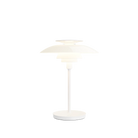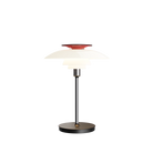 The fixture emits a diffused, reflected, symmetrical light. The majority of the light is directed downward. The opal acrylic shades provide comfortable room lighting. On the original fixture, the red hue of the top reflector adds an intense, warm glow to the light. The white version has a white top reflector that reflects the light for a clean, elegant look. The choice of light source will determine the color of the illumination.