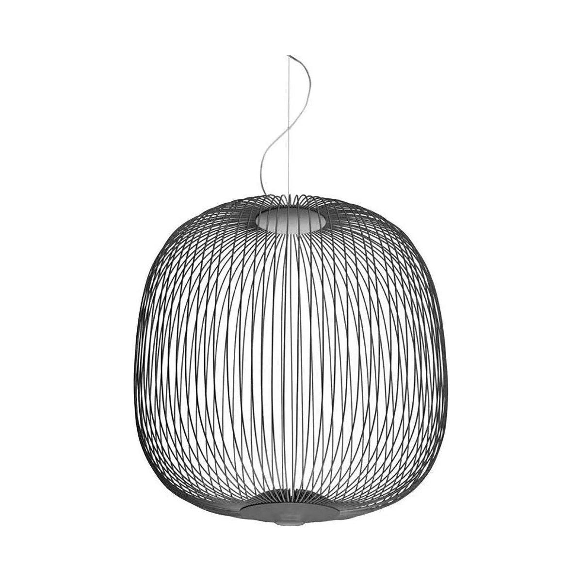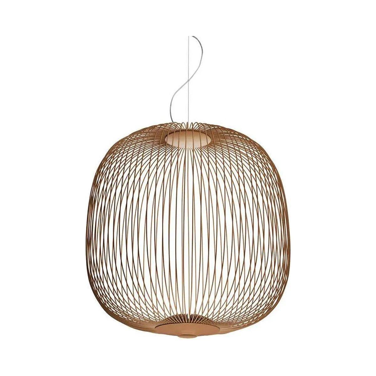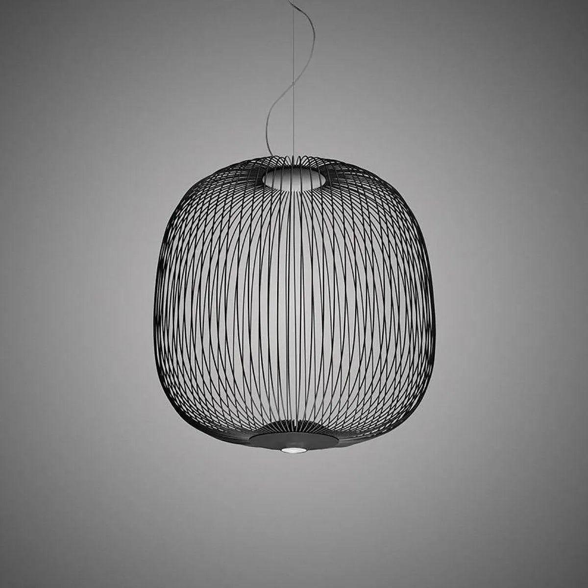 Spokes expresses a feeling of light weight and motion. As if crossing a magical and geometrical mesh, the light filters out from the inside, projecting a kaleidoscope of blocks and voids. The shape of the Spokes 2 suspension lamp recalls a lantern or an aviary.