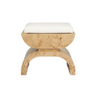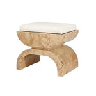 This lavish, Asian-inspired stool delights with its graceful curves and sculptural form. The exotic, natural beauty of rich burl wood gives each piece a warmth and personality all its own, and the structured white linen seat offers the perfect perch. Bunch two beneath our Marshall console for a dramatic entryway, then introduce as extra seating when you’re playing host.