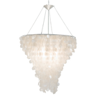 Row after row of glittering capiz shells dangle like exquisite jewels from this gorgeous chandelier, catching the light in a spectacular display. Adds glamour and polish to any space.