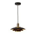 The Rancho Mirage Large 15" OD Pendant, a beacon of sophistication and refinement that adds a touch of vintage-inspired charm to any room. Available in two sizes and crafted with precision and artistry, this pendant light features a weathered brass finish and a matte black tiered shade, creating a mesmerizing interplay of light and shadow. The hand-applied gold-leaf finish beneath the shade casts a warm and inviting glow, transforming your space into a haven of warmth and elegance.