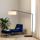 Enhance your modern living space with the architecturally bold Stretch Arc Floor Lamp. With clean lines and a minimalist aesthetic, this lamp effortlessly complements any contemporary decor. The full reach steel arc arm ensures precise positioning of the white linen shade, allowing you to direct light to the heart of your space or wherever illumination is most required. Easily operated by a simple on/off step switch, this lamp provides functional convenience with a touch of elegance. It's the perfect solution for rooms in need of overhead lighting, offering a hassle-free alternative that eliminates the need for an electrician or holes in your ceiling.
