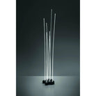 Seven flexible, transparent PMMA rods create tubes of LED light flowing upwards from a black painted aluminum base.