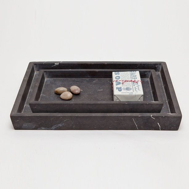 The bold, black marble of our Luxor collection makes a luxurious statement. The weight and sturdiness of each piece are as impressive as its appearance.