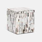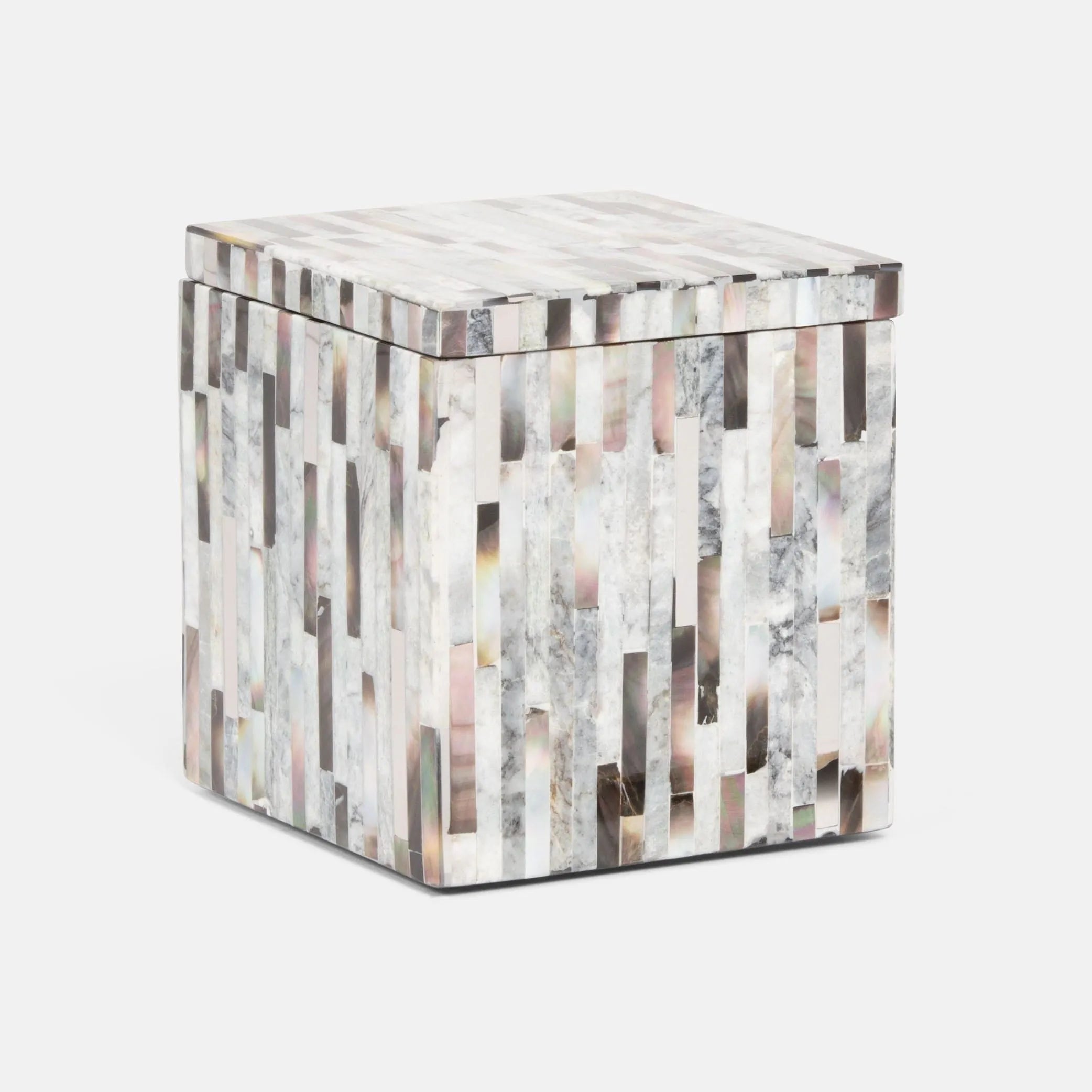 Romblon stone, shell and silver metal are set in a vertical, variegated pattern to craft the Luzia collection.