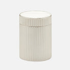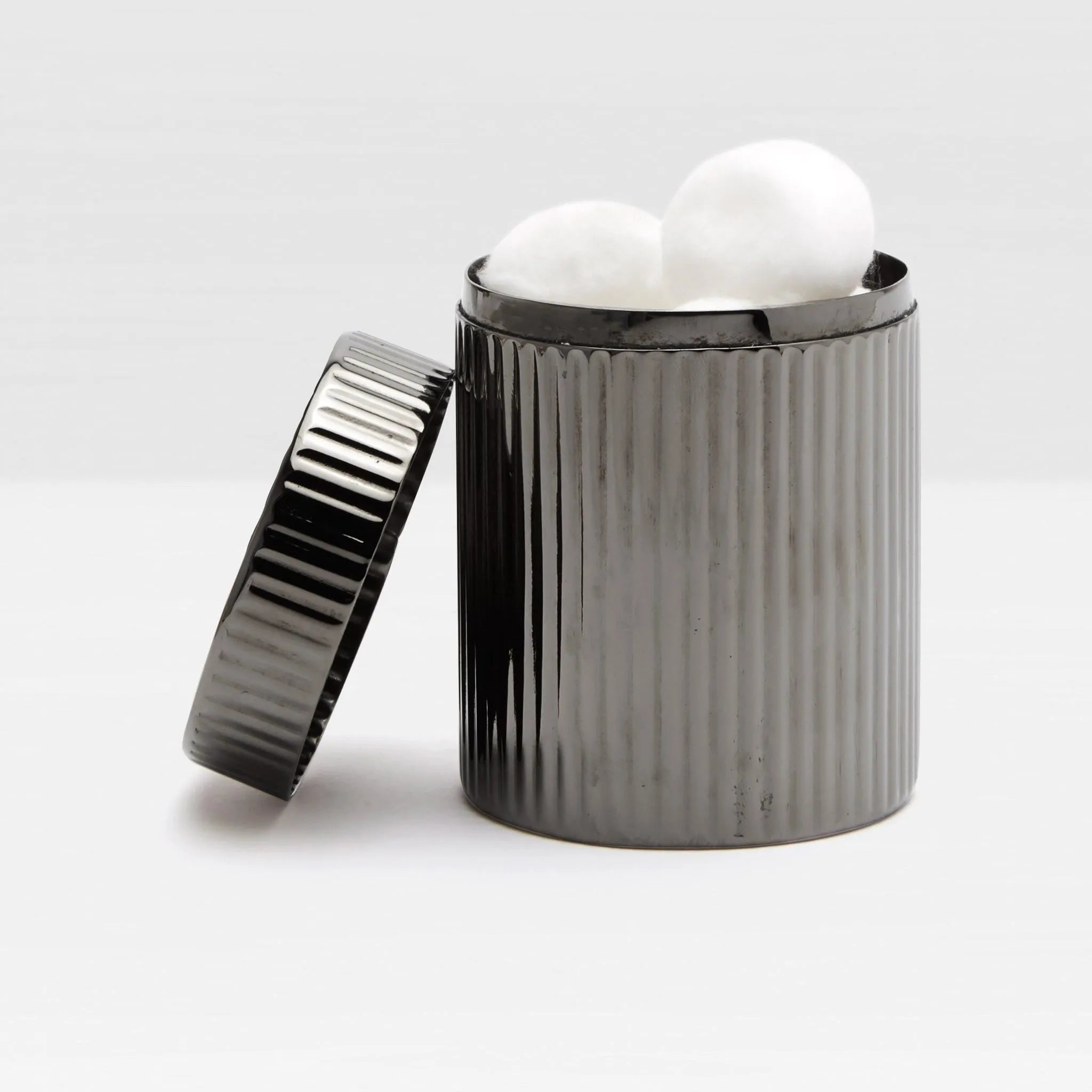 Antique-chic ribbed metal bath collection blending modern industrial with art deco glam.