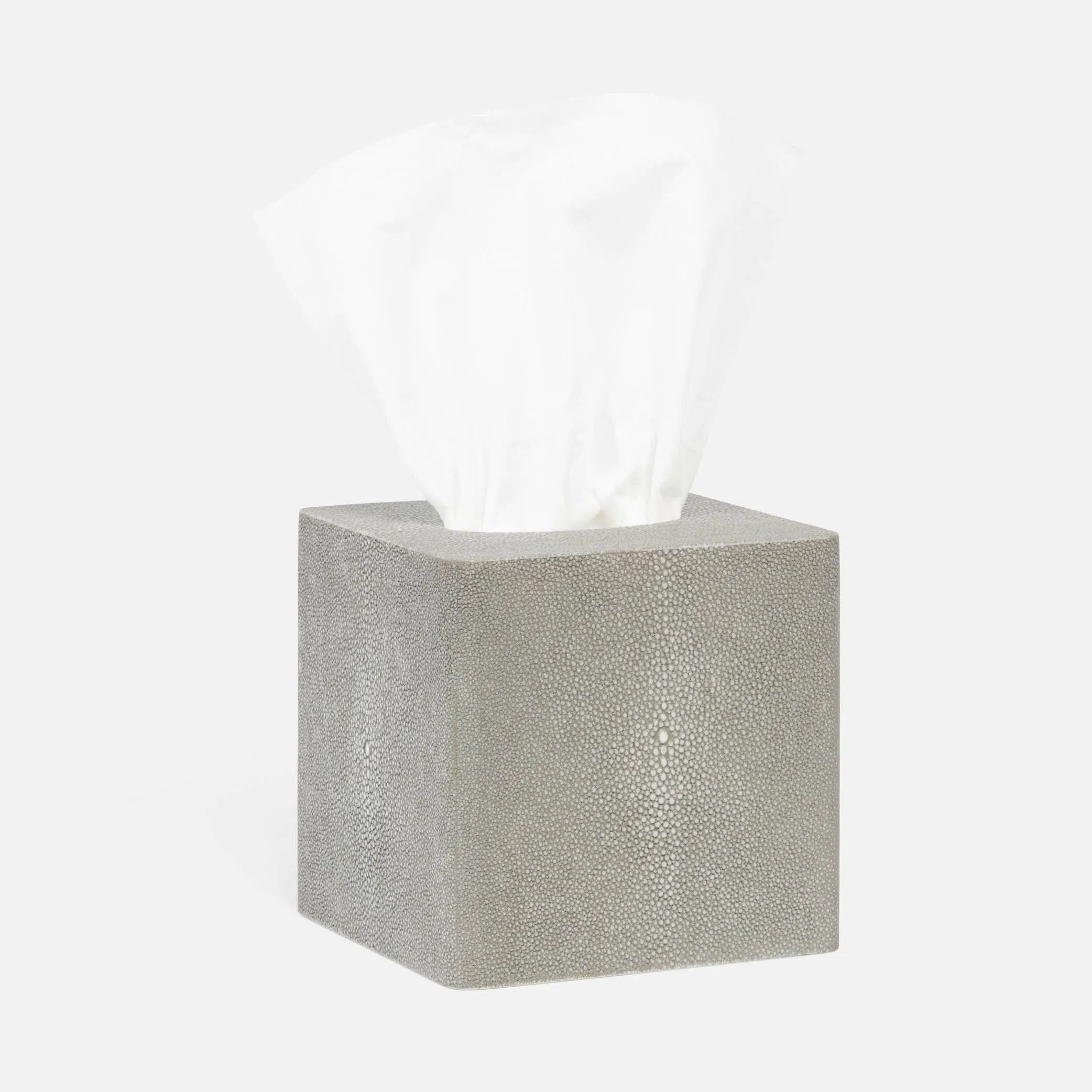 Stunning bath collection in our signature faux shagreen with an elevated rounded corner detail. Appropriate for the most discriminating bathrooms.