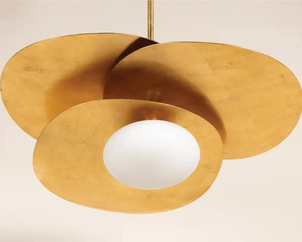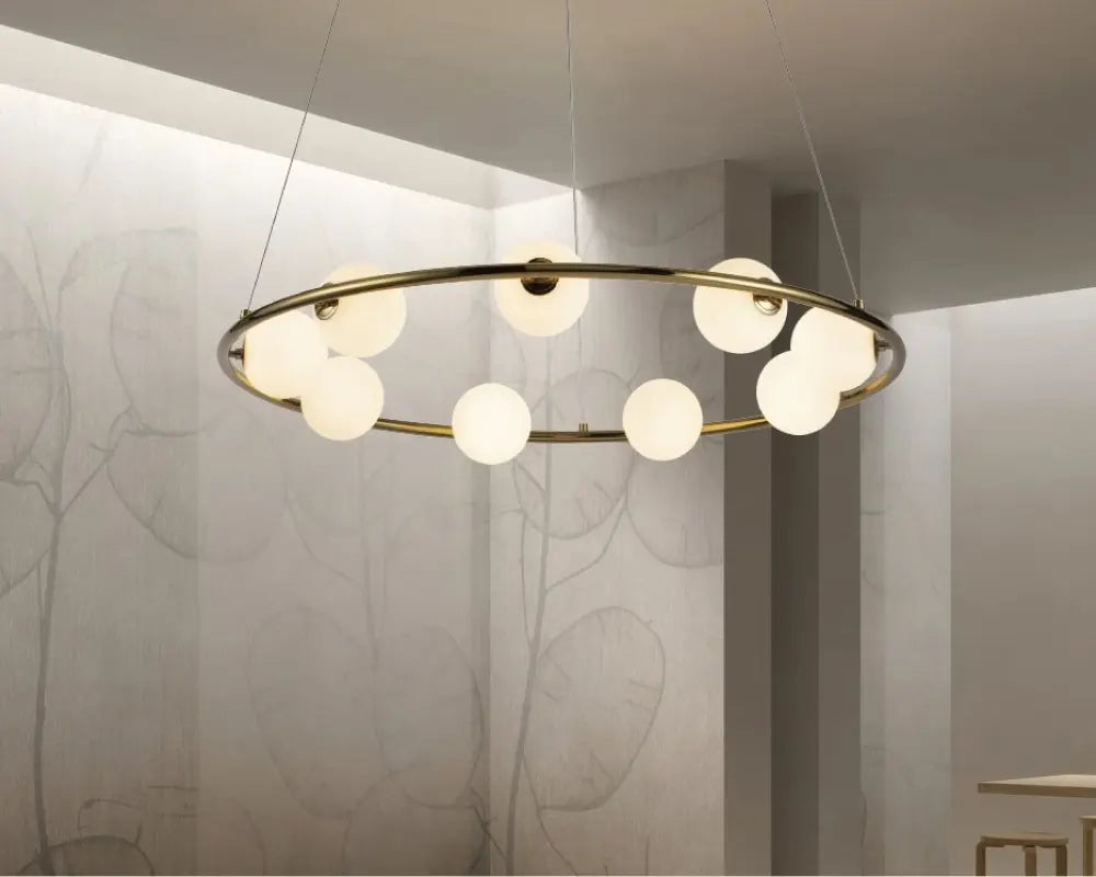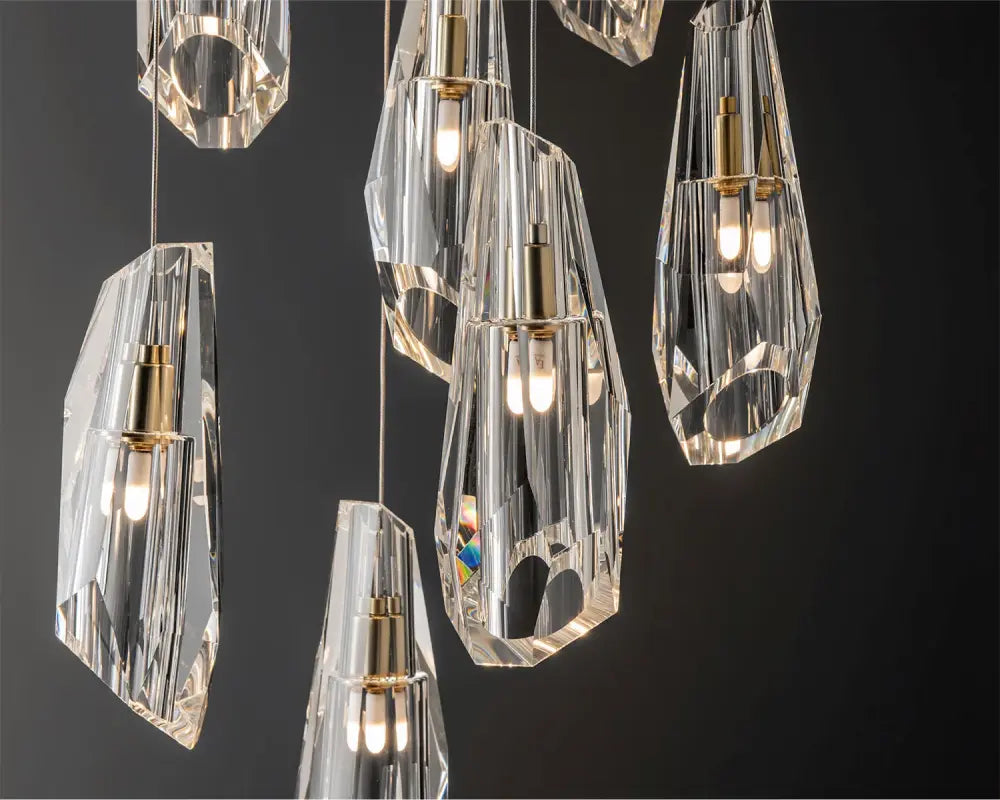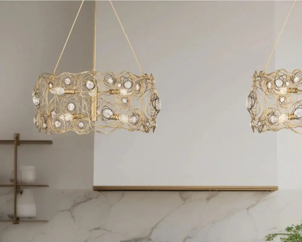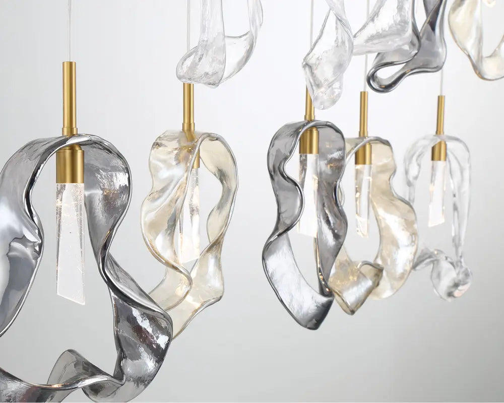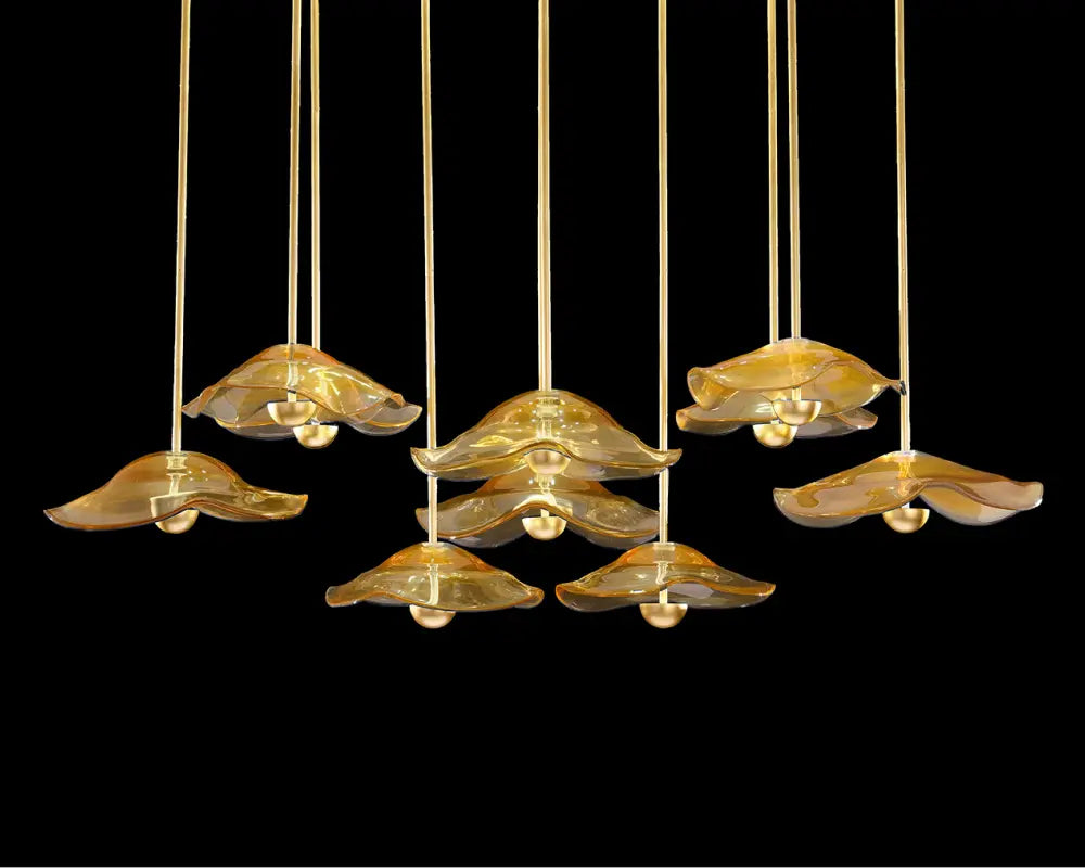 Designer gold and glass pendant lighting display