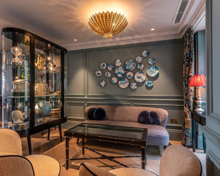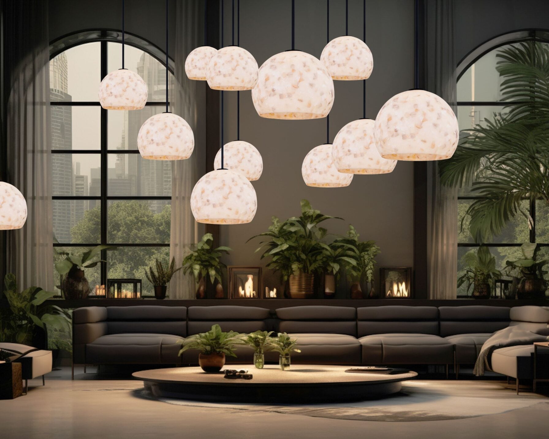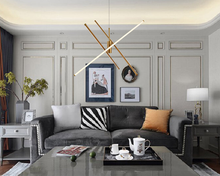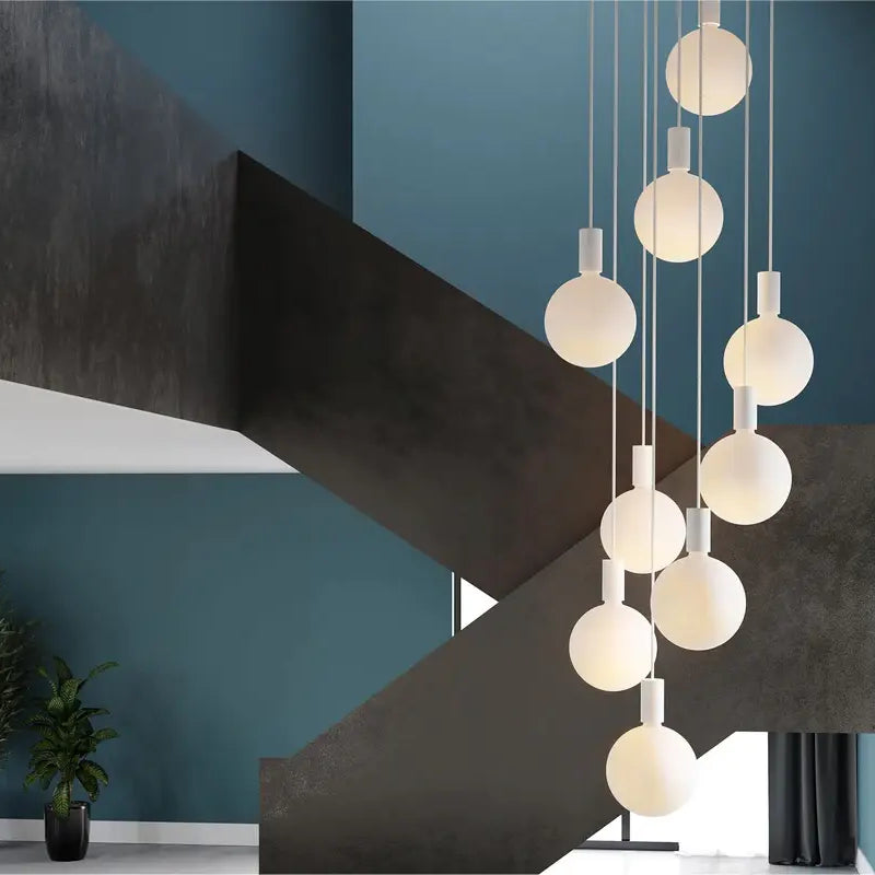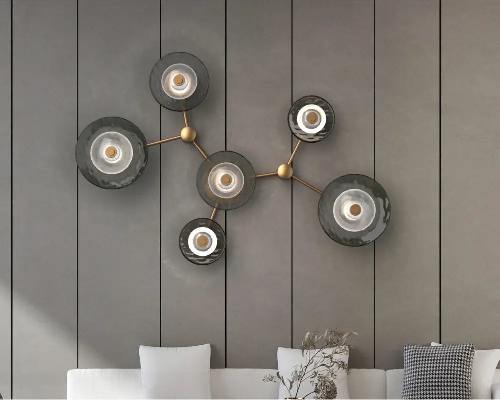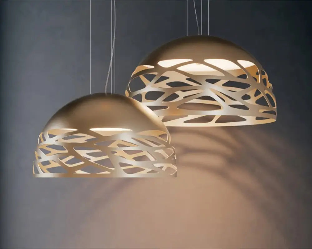 Designer gold and glass pendant lighting display