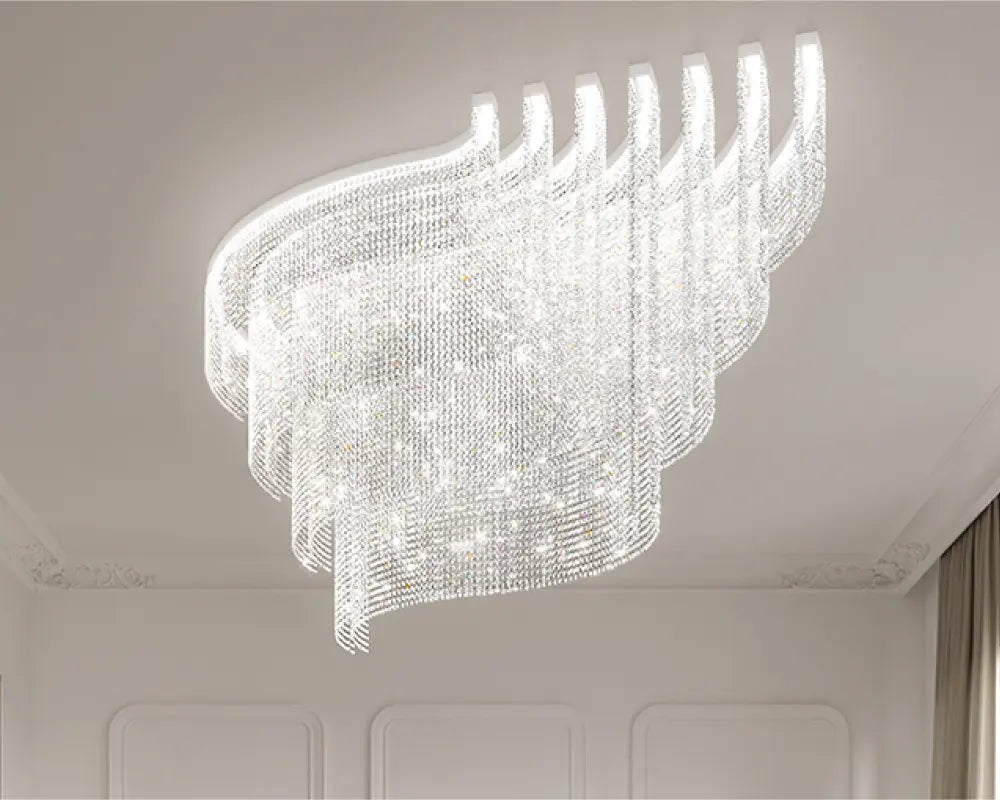 Gold starburst chandelier on ceiling