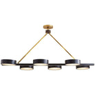 Minimalist modern and oh so cool. The six-light Linus Chandelier's muted antique brass finish is perfectly complemented by its bronze details. The frosted glass diffusers serve dual functions creating softer light below and adding additional light to the chandelier's frame spotlighting its bold bronze finish. Additional pipe available (PIPE-101). Approved for use in covered outdoor areas.