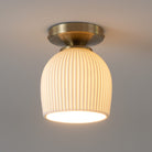 * The Petaluma Ceiling Light features a meticulously fashioned shade made of fine bone porcelain, adorned with an etched line pattern that intensifies the beauty of the emitted light.