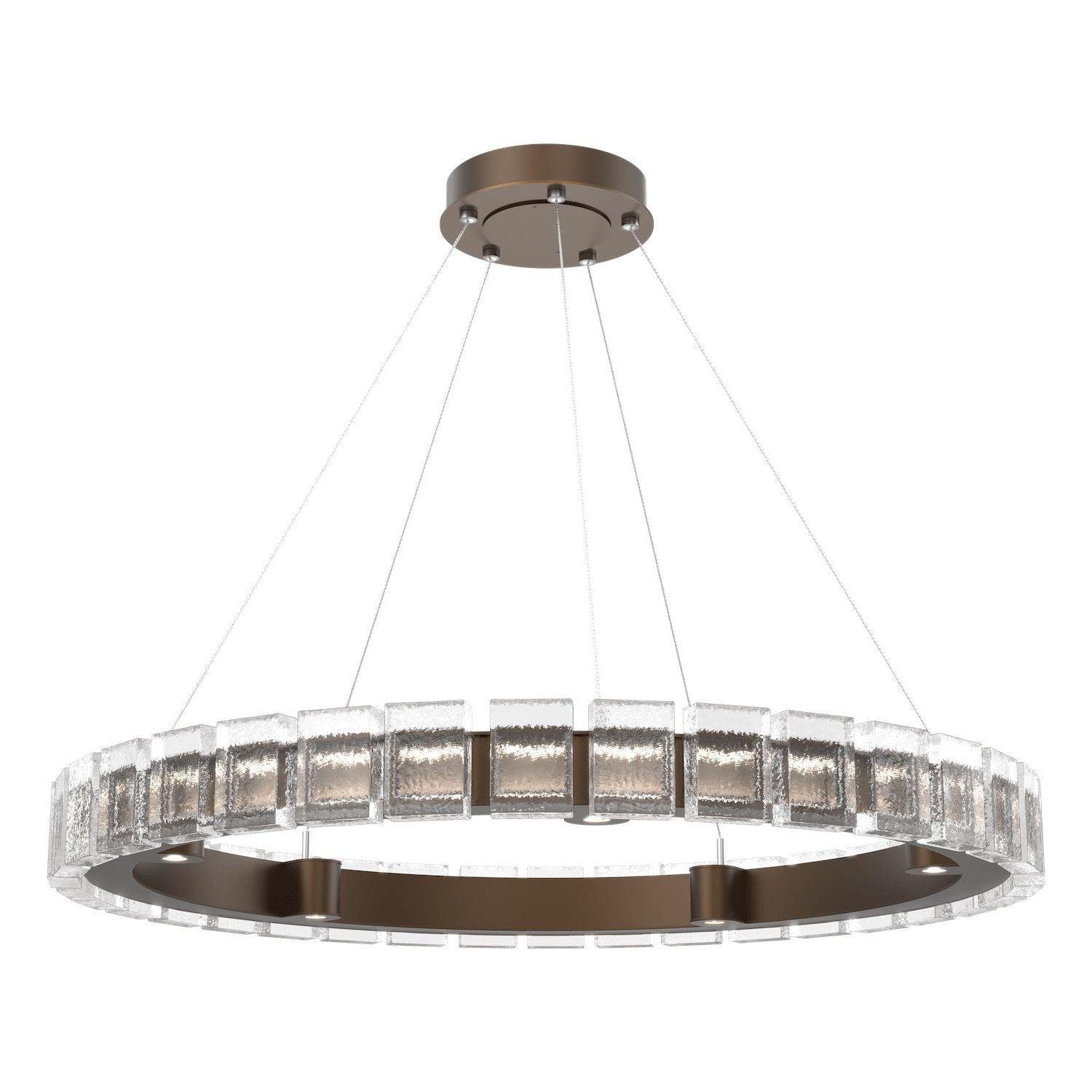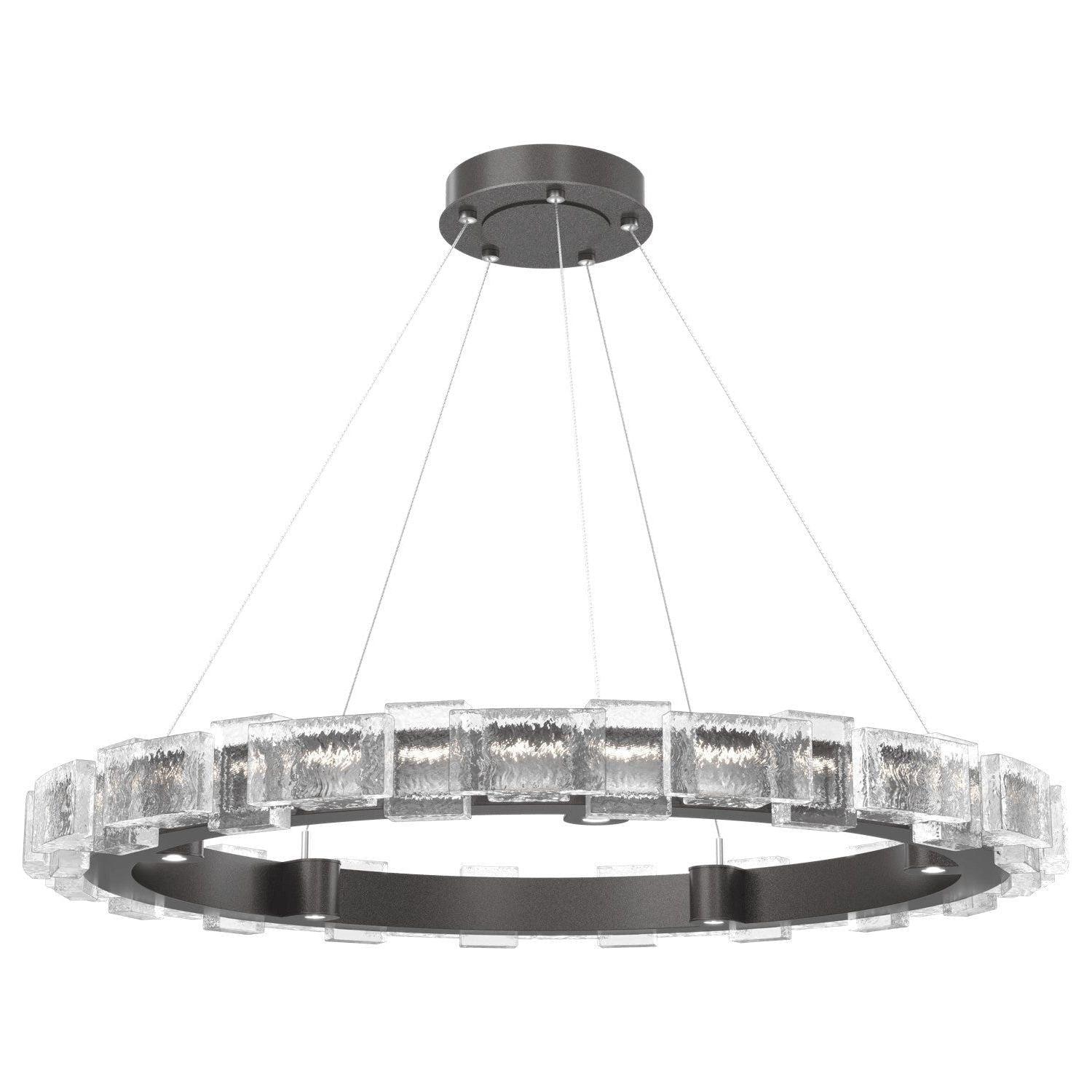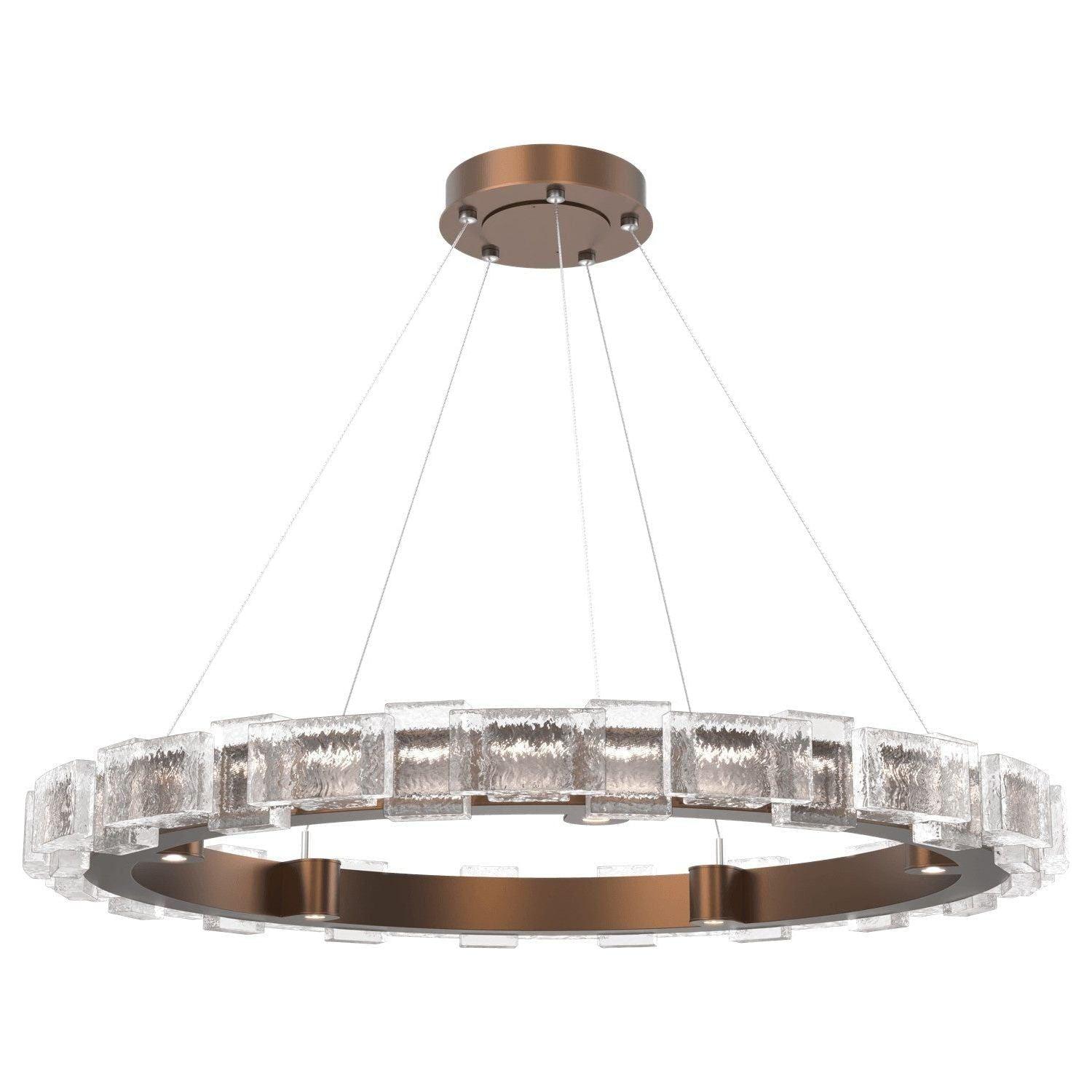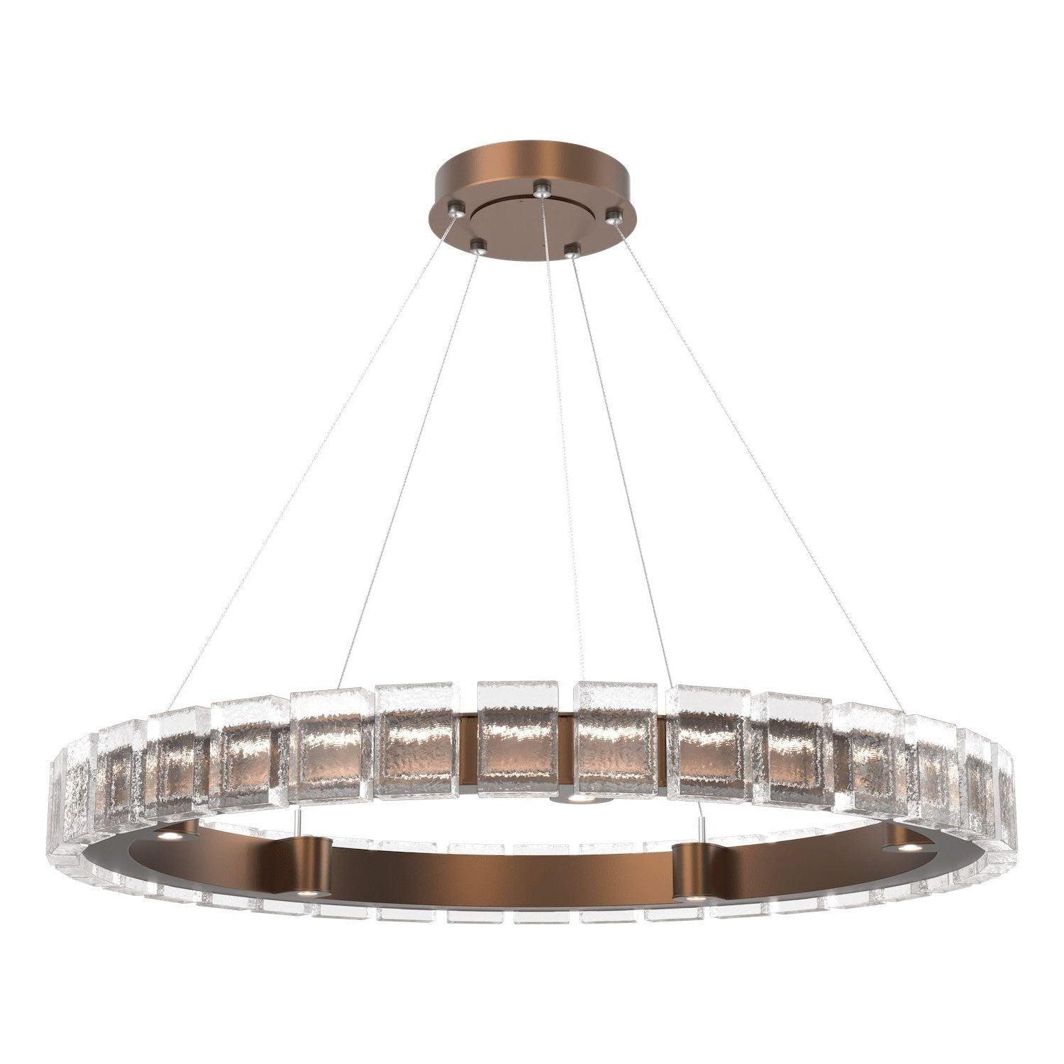 The 2,500-year old art of glass mosaic tiling is brilliantly brought to light in the Tessera ring chandelier. Tessera lighting features a choice of two tile motifs in artisan cast crystal glass and is illuminated with 93+ CRI integrated LED.