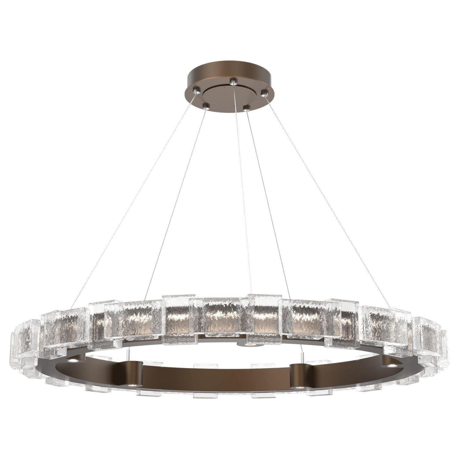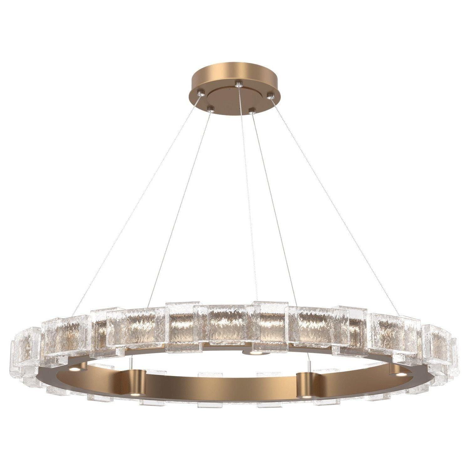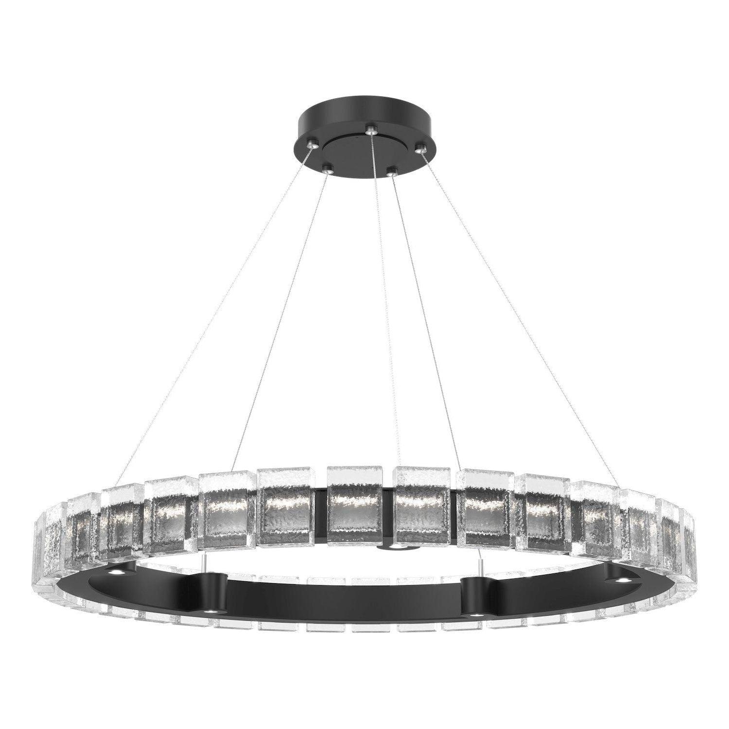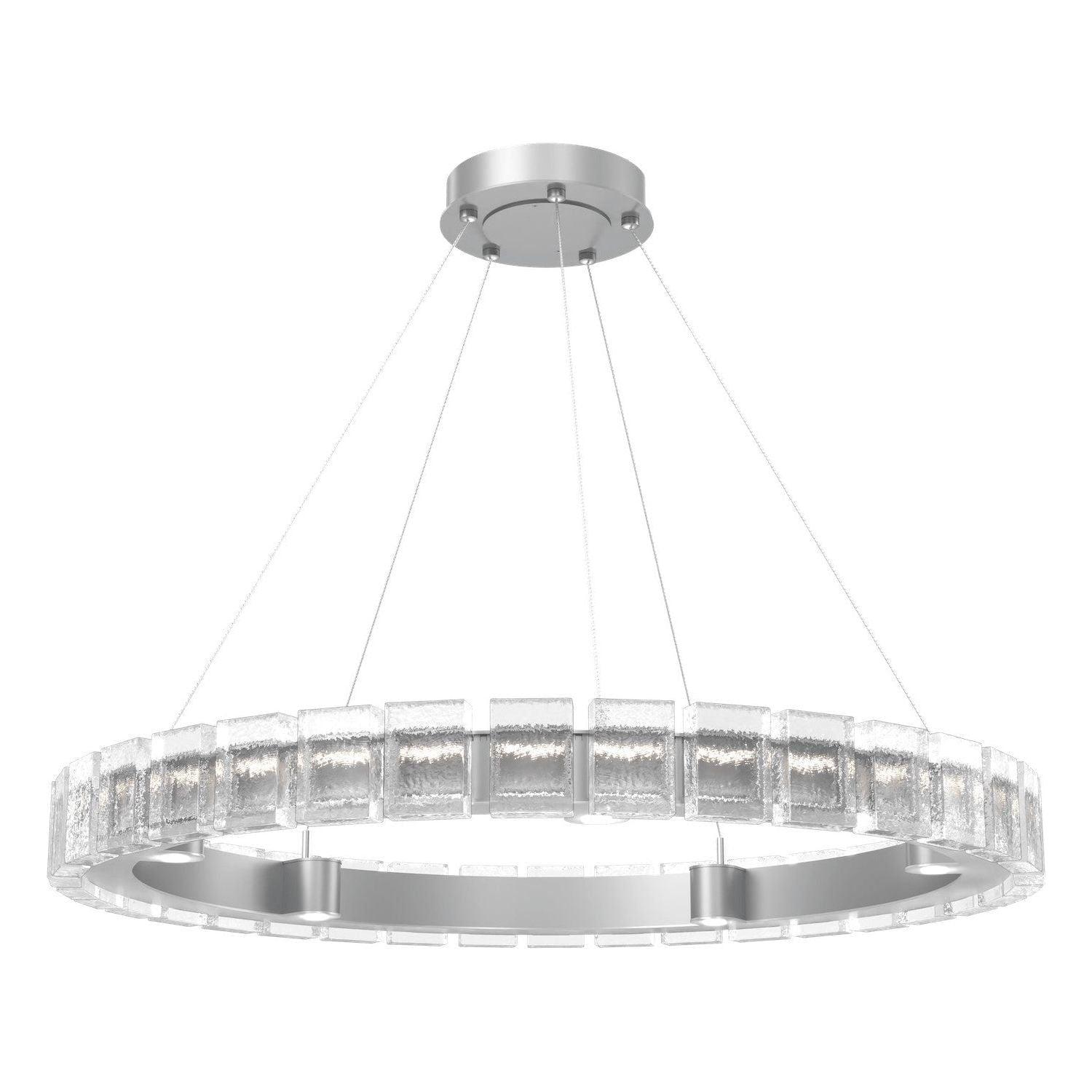 The 2,500-year old art of glass mosaic tiling is brilliantly brought to light in the Tessera ring chandelier. Tessera lighting features a choice of two tile motifs in artisan cast crystal glass and is illuminated with 93+ CRI integrated LED.