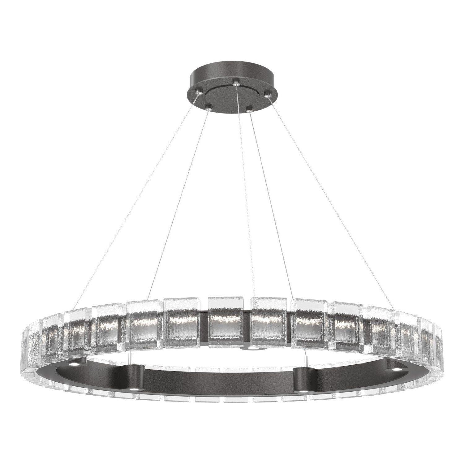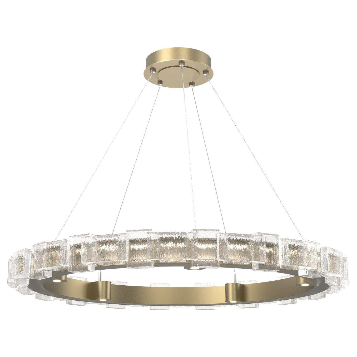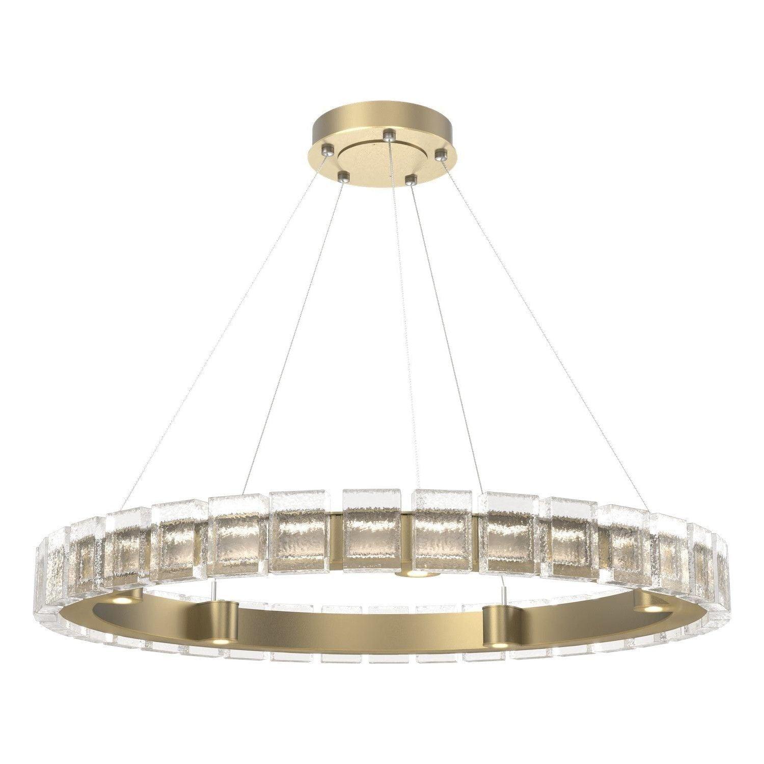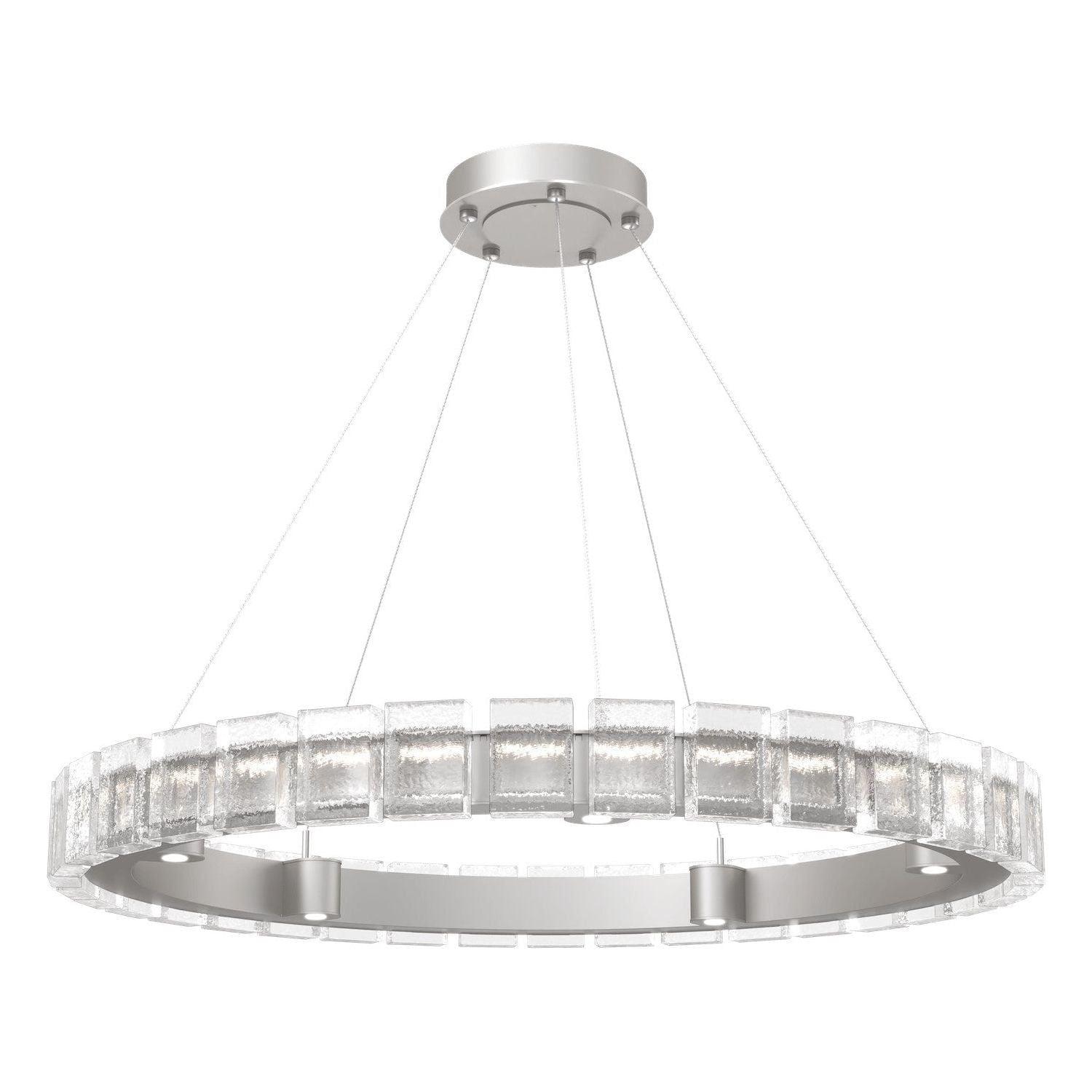 The 2,500-year old art of glass mosaic tiling is brilliantly brought to light in the Tessera ring chandelier. Tessera lighting features a choice of two tile motifs in artisan cast crystal glass and is illuminated with 93+ CRI integrated LED.