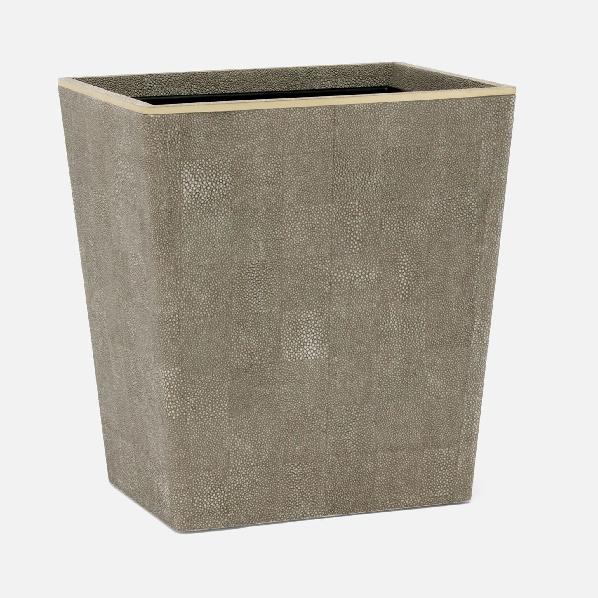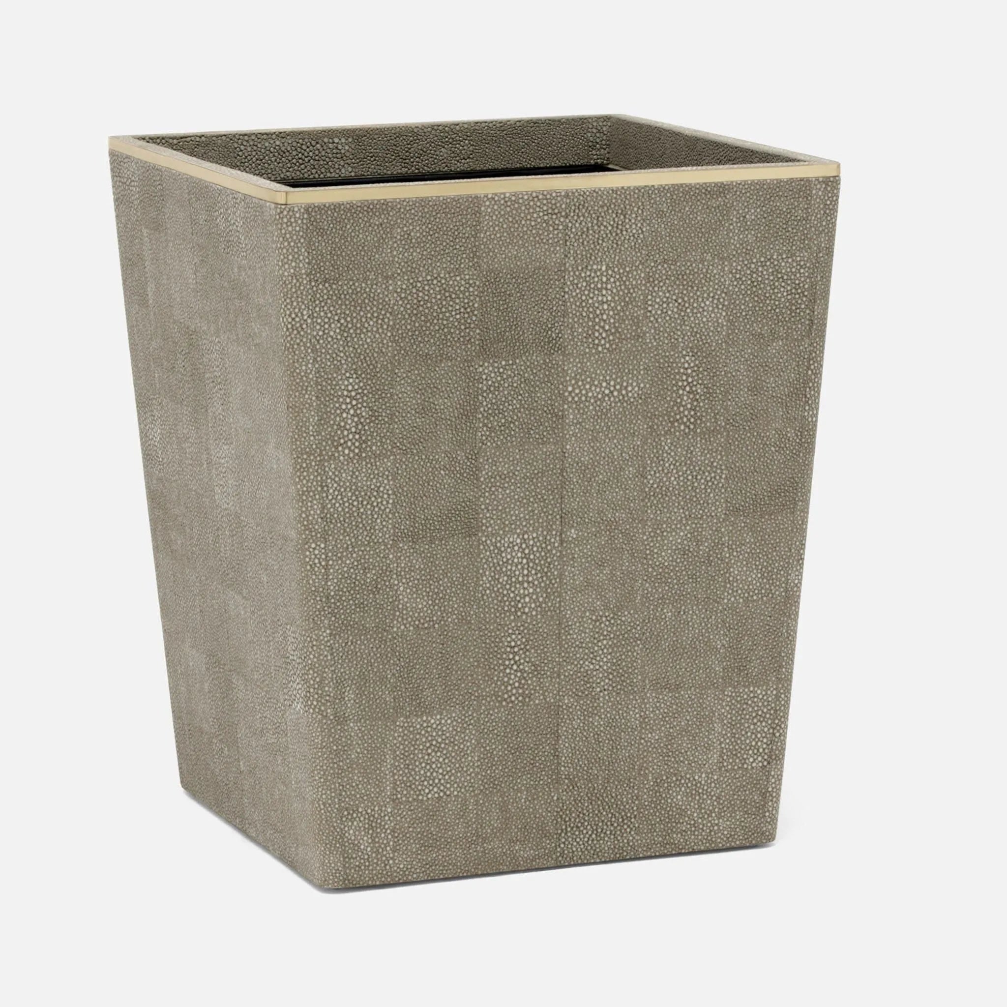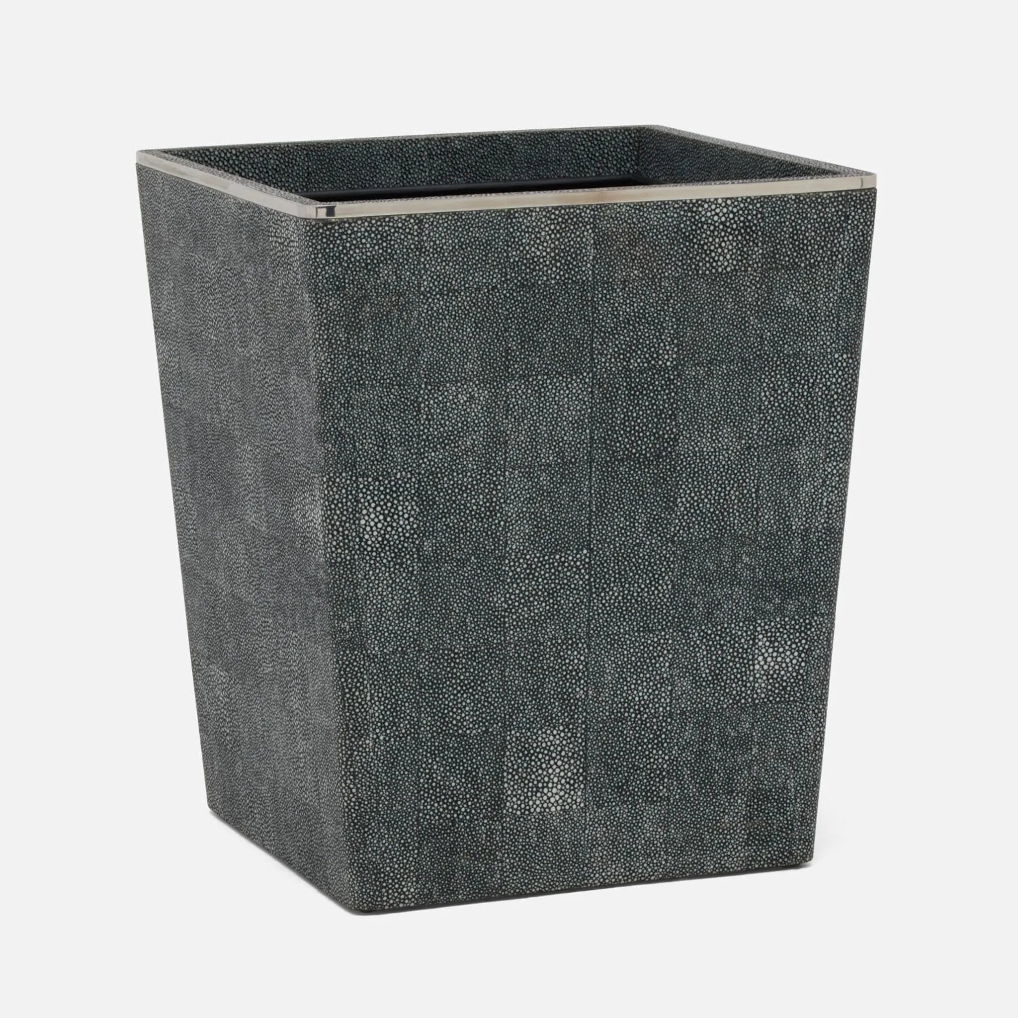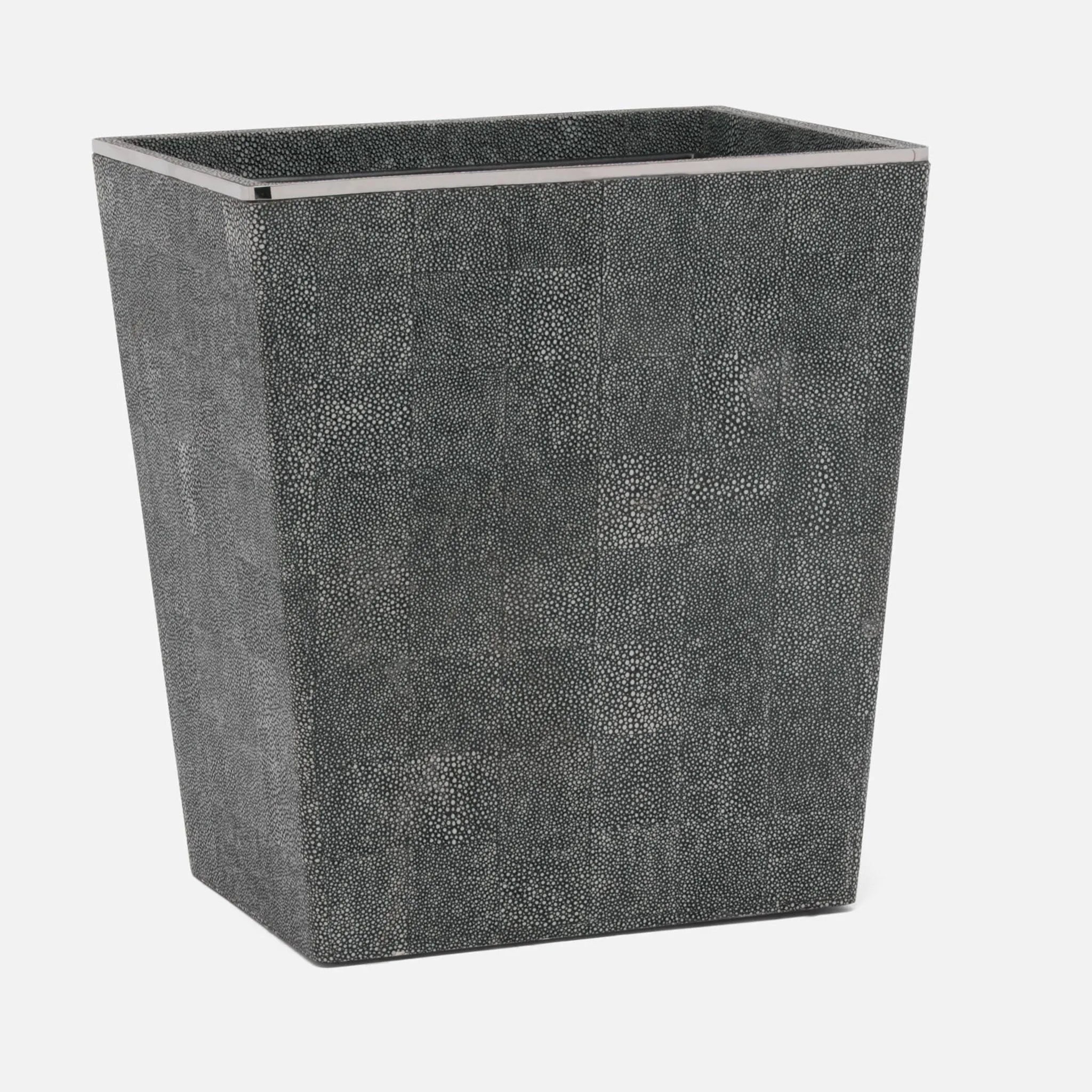 Pairing faux shagreen with delicate gold or silver trim, Bradford elevates the classic bathroom accessory set to peak luxury.