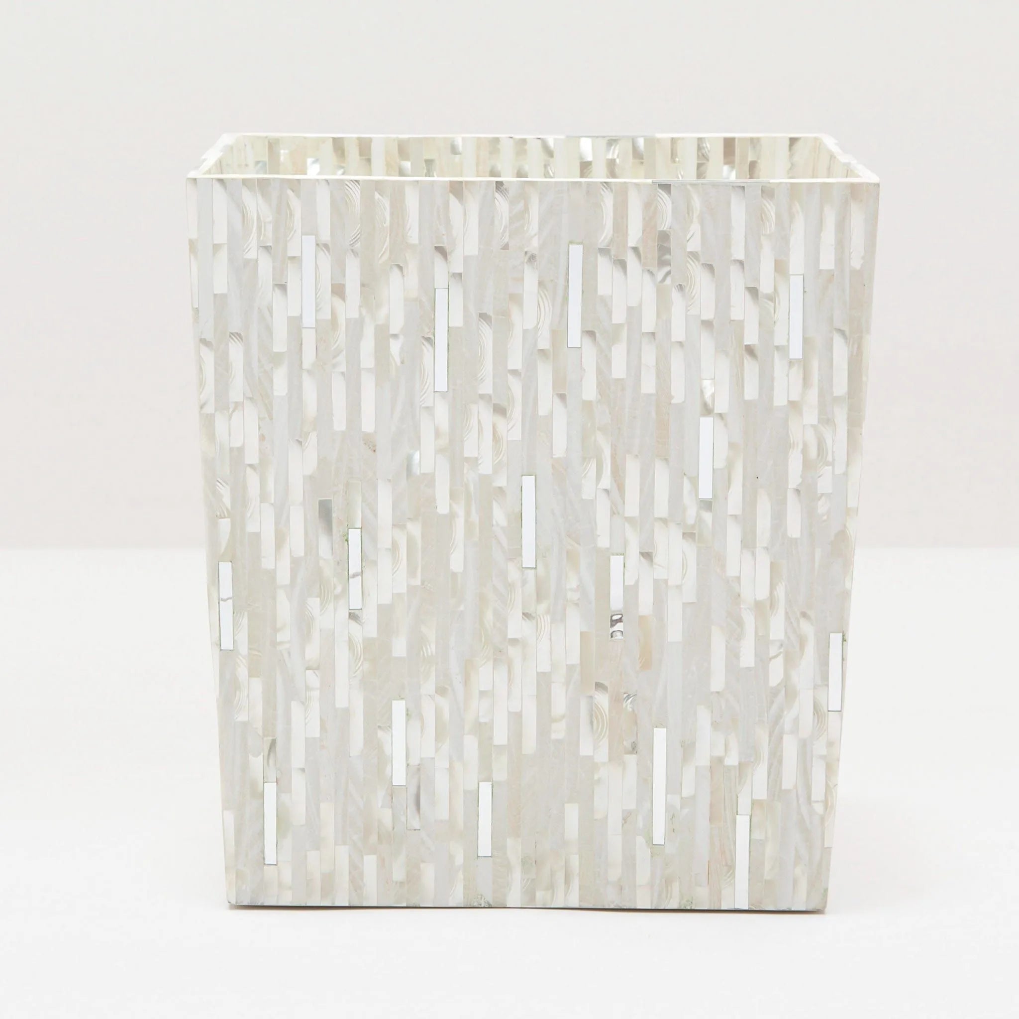 Add some understated glamour with the Cortona's sparkle. Clamstone and troca shells show the offset pattern's shimmer while metal rods add the shine. Go with brass to warm up a space, or cool it down with silver.