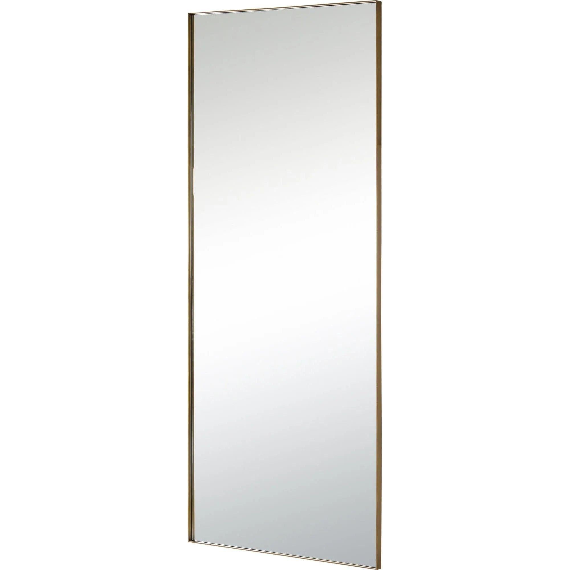 An antique brass finished iron frame brings a chic quality to this classic floor length mirror design. Set in the mid-century bedroom, it will reflect beauty at every angle. Pair with vivid tones for the ultimate impact.