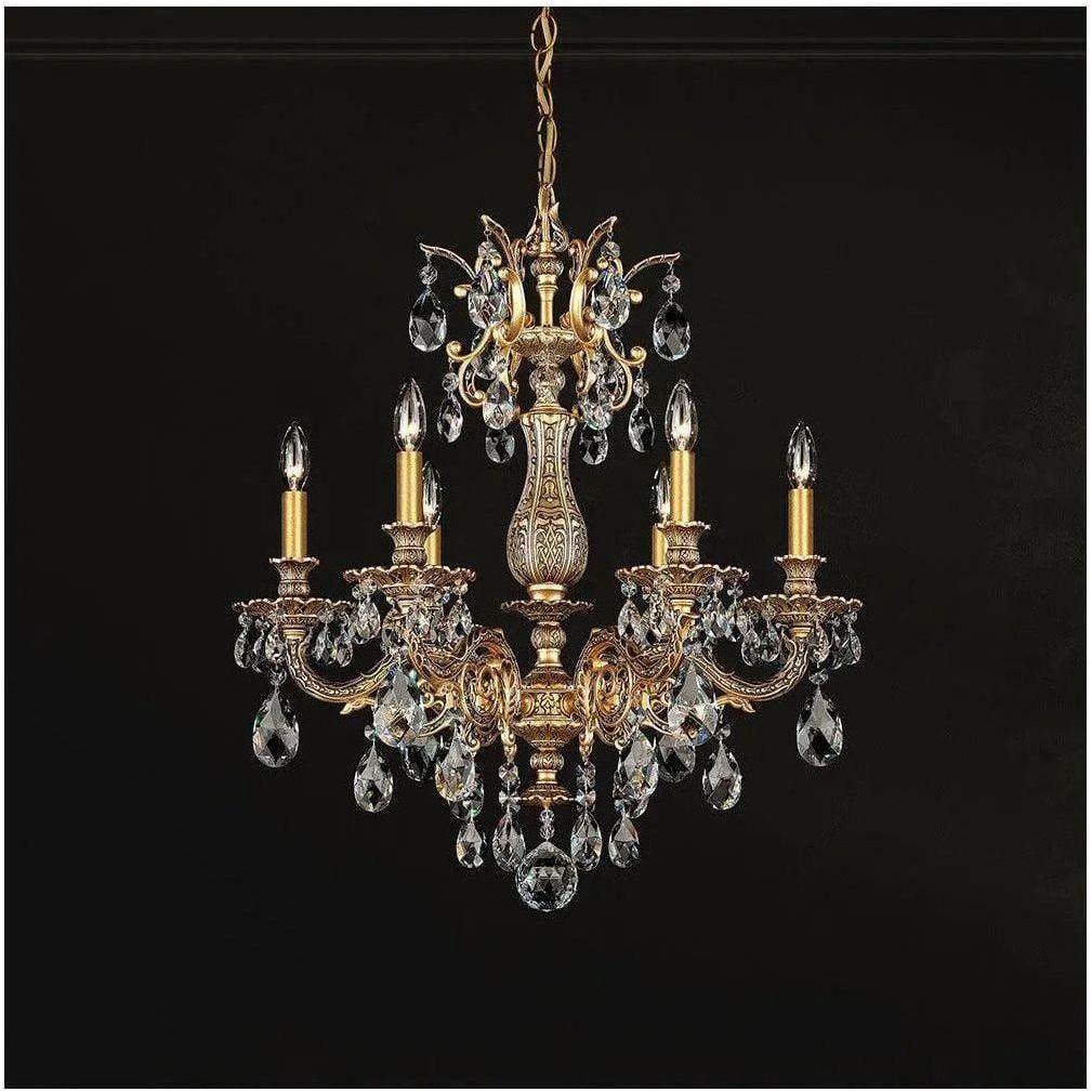 The baroque castings of Milano, made in Italy, feature delicate ornamentations that celebrate the heritage of the great Italian chandeliers of the seventeenth Century. Heavy crystals enhance the lace-like precious metal body.