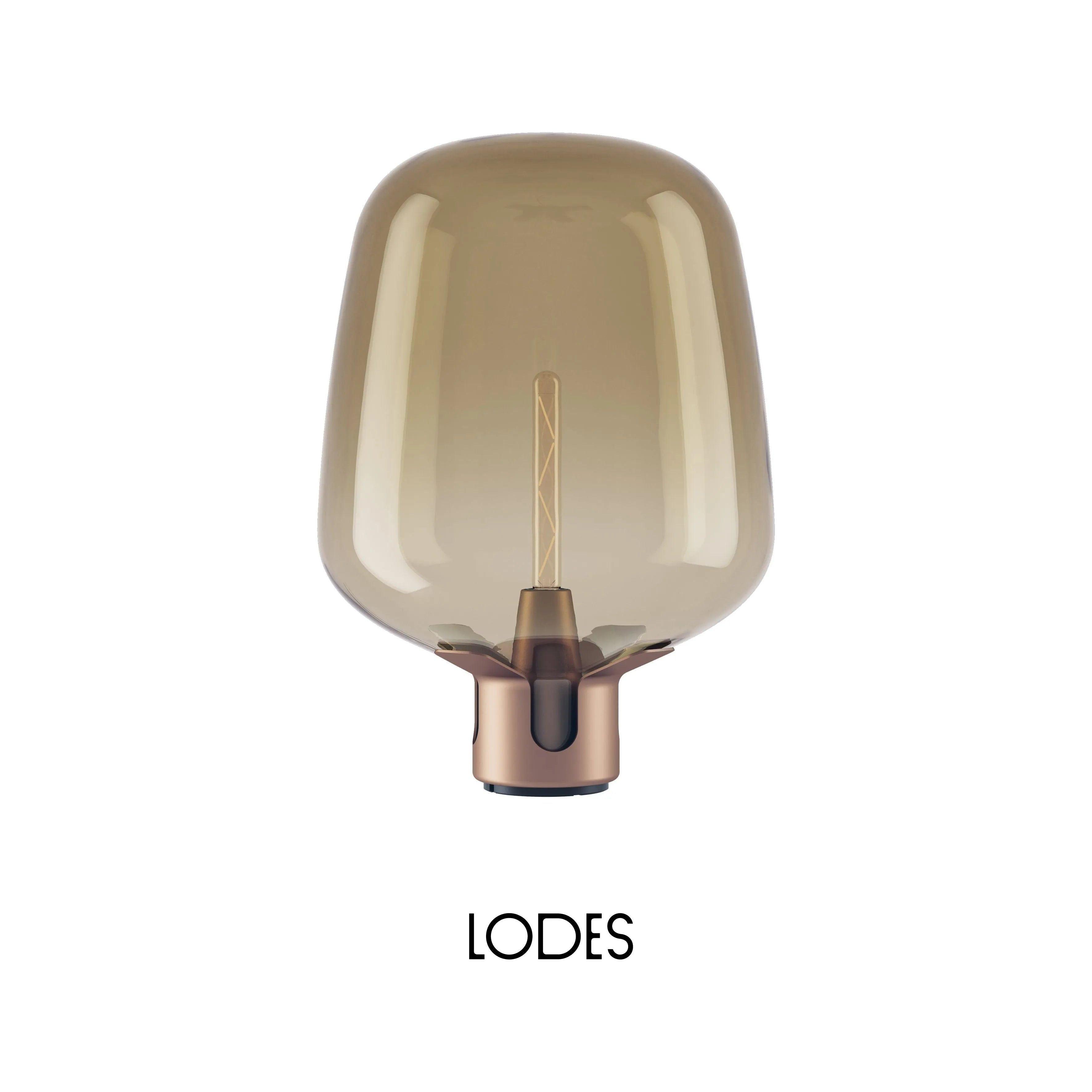 Flar is a floor and table lamp inspired by traditional storm lanterns which use glass pipes to protect the flame. It features a blown glass diffuser designed to enclose a filament LED bulb that amplifies the light source diffusing a soft light filtered through the glass. It is equipped with a dimmer adjustable from the switch.