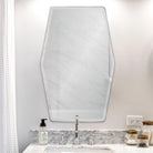 The Tel Aviv hexagonal mirror features a sleek frameless design and beveled glass. May be hung horizontally of vertically.