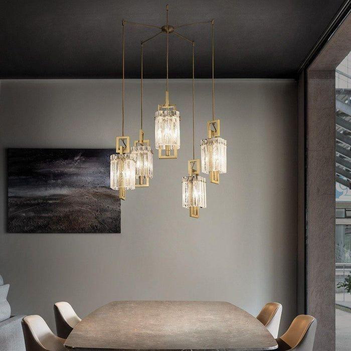 The Crek S5 Suspension unleashes a spectacular design with contemporary styling that manifolds the look of your not-so-interesting interiors. Inspired by the rock crystal, this fascinating light accessory has beautiful glass panels with a metal frame that adds an artistic element, which stands out. With the E12 light source, this modern suspension adds a gleaming effect in the bedroom, dining room, living room or hallways. The brushed brass finish of this suspension adds drama and volume to the right places.
