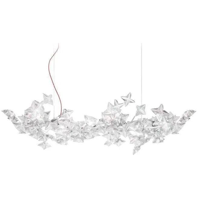 Hanami is a symbol of delicate poetry, taking its name from the traditional Japanese ritual of observing blossoming cherry trees. The Hanami family includes ethereal suspensions, available in two sizes, as well as an applique version that redefines the traditional ceiling lamp concept. Hanami’s unique, delicately coloured illumination is distributed throughout hand-folded flowers made of Lentiflex®, a noble material that recreates diamond-like reflections, mounted on a painted steel and polycarbonate frame that houses its LED sources.