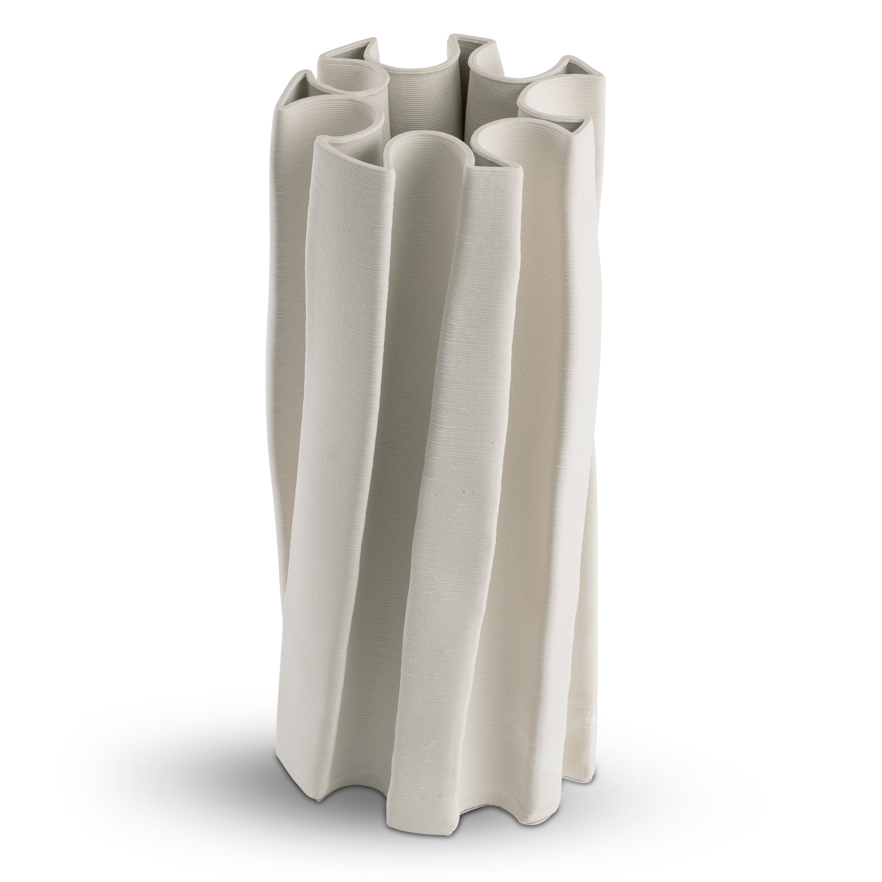 Timeless materials meet cutting-edge construction with the Parma Large Vase, an innovative design constructed from 3D printed ceramic exquisitely layered to achieve a highly unconventional geometry. This impressive accent features versatile off-white coloration enhanced by the light and shadow that plays across its finely grooved surface. Parma is a true conversation starter.