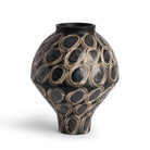 The dazzlingly-proportioned Tessa Vase turns a typical vessel silhouette on its head. This inventive accent features a narrow foot that flares outward to a wide center before rounding upward to a lipped opening. The black finish is adorned with an all-over circular pattern, sure to stand out in any arrangement.