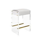 You'll love the illusion of weightlessness and luxury with our Indy counter stool. Sturdy and glamorous, the Indy features a pristine, white vinyl cushion secured between acrylic side panels and polished nickel hardware accents.