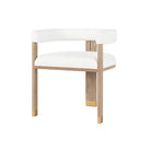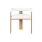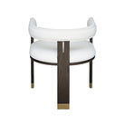 The Jude barrel back dining chair makes a dramatic statement from every angle. Perfectly tailored in crisp white linen upholstery, its oak, tri-leg frame showcases a cerused oak finish and brass ferrule hardware, all combining for a highly sought silhouette. Jude looks great as a pair in your living room or grouped around your favorite dining table.