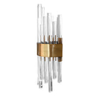 The Art Deco-inspired Natasha sconce features offset acrylic rods housed within an antique brass band. Illuminated from above and below, Natasha gently diffuses light to create a warm, inviting ambiance for your hallway or study