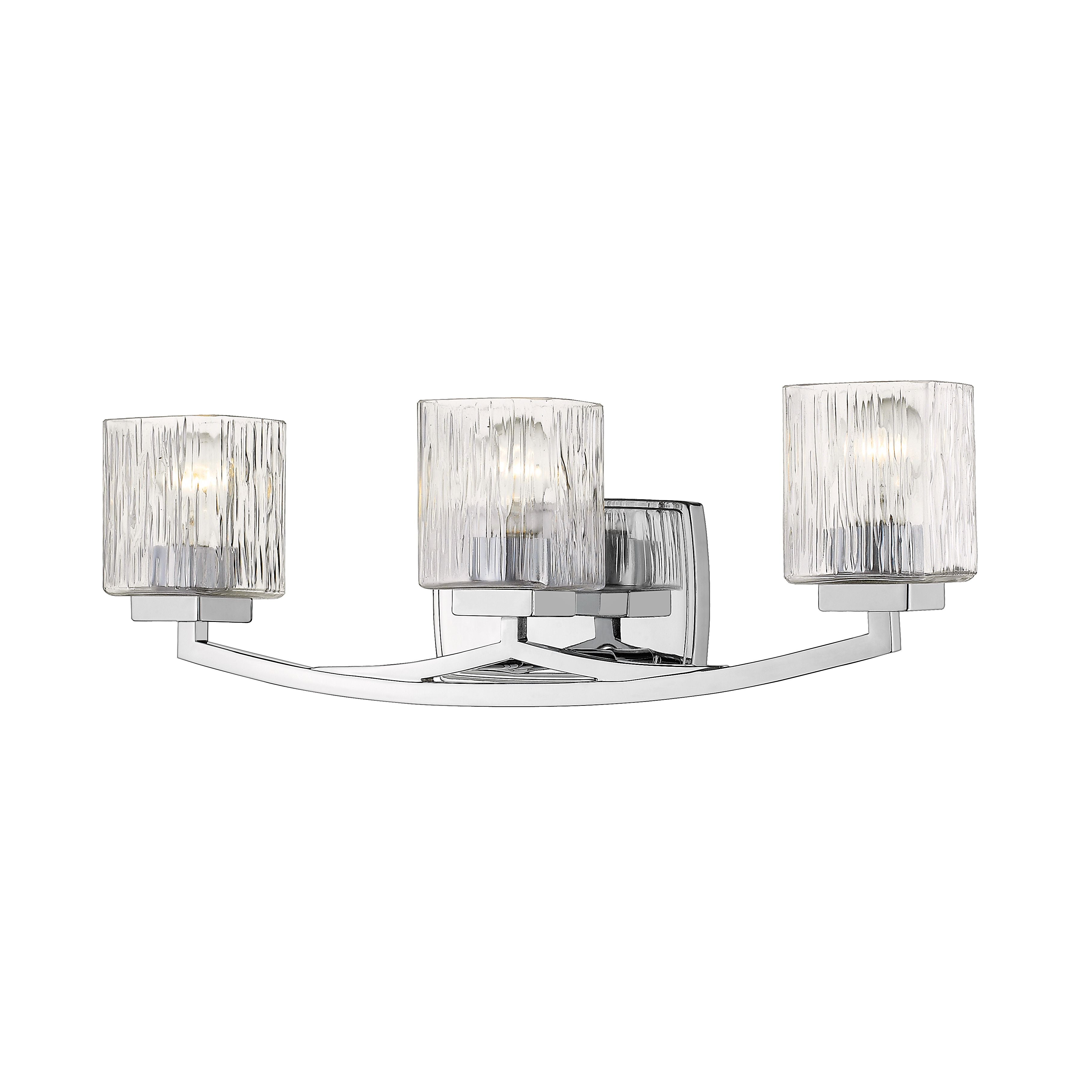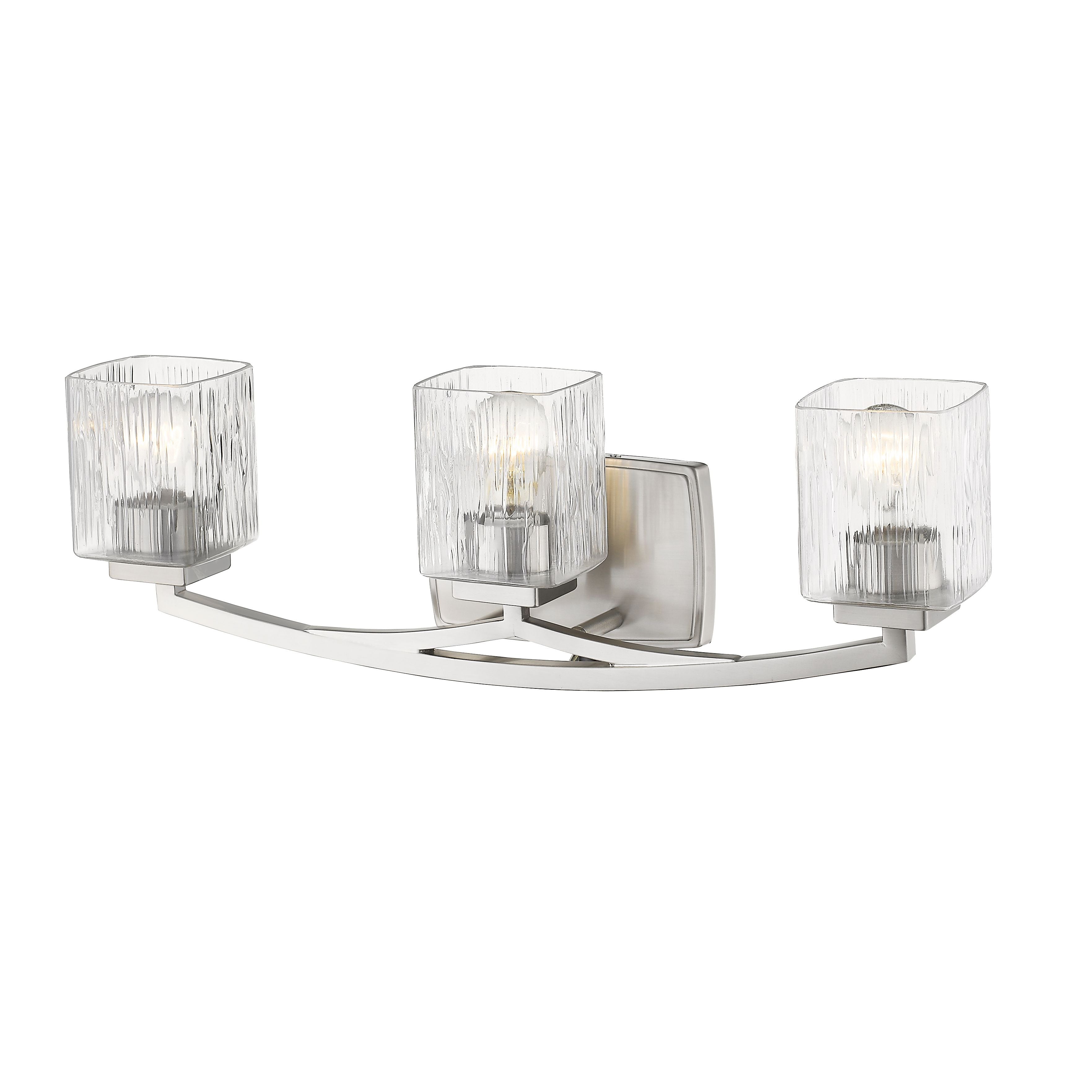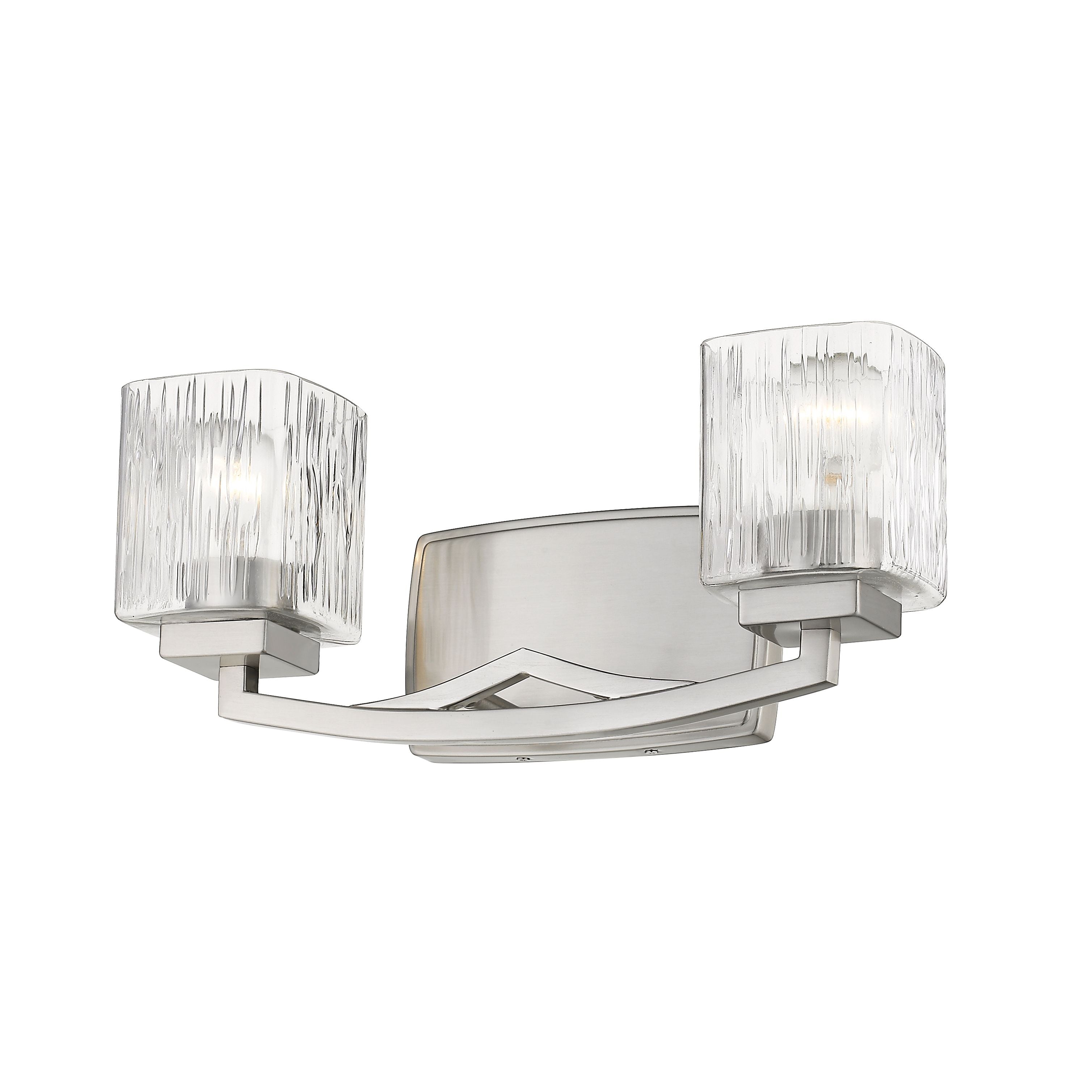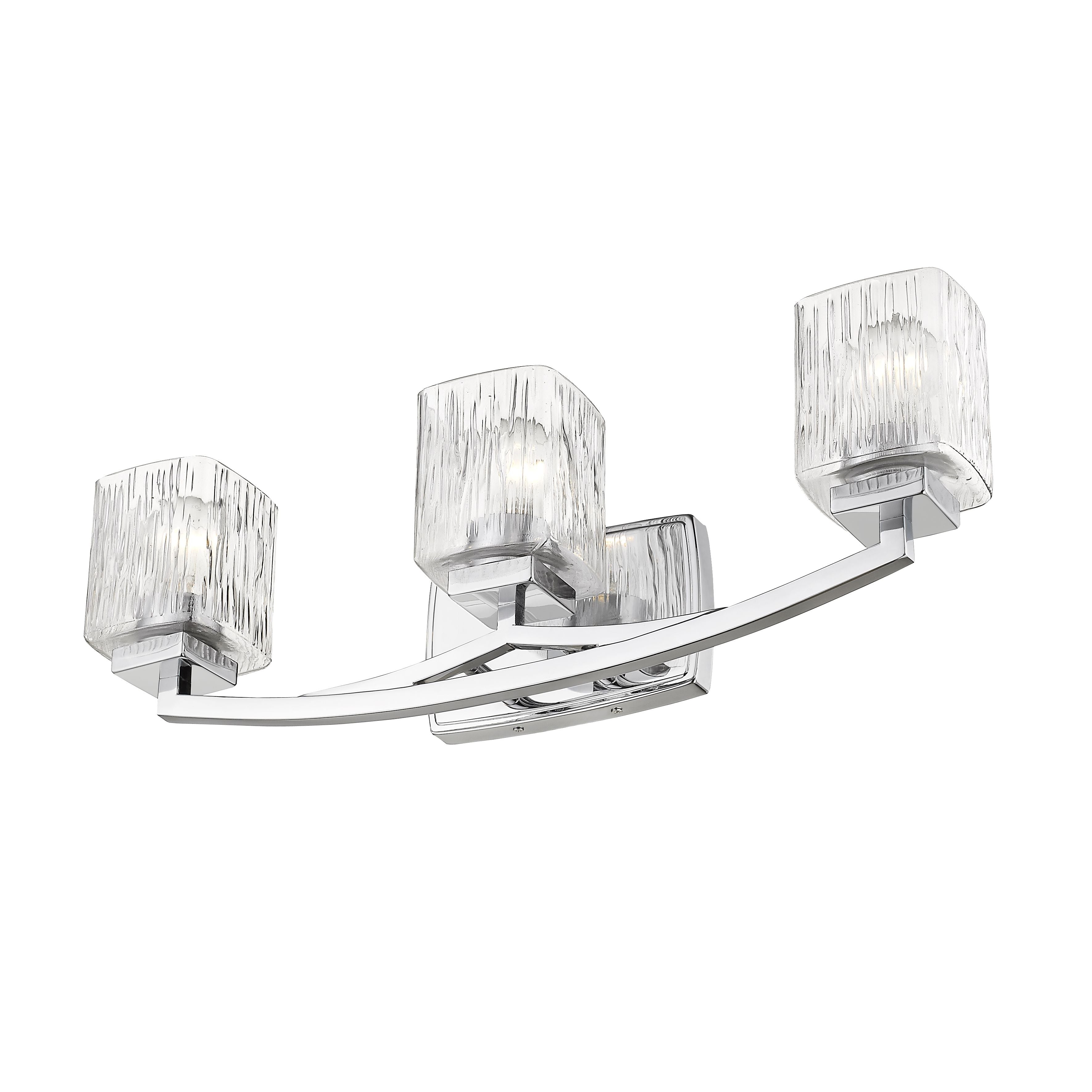 The Zaid collection of contemporary bath fixtures are defined by the gentle curve of the fixture arm paired with the finely variegated detail of the Clear glass shades. These contemporary fixtures are offered in many sizes and a choice finishes which include Bronze, Brushed Nickel, or Chrome.