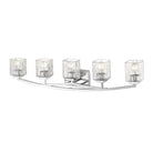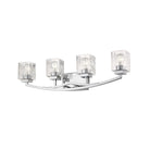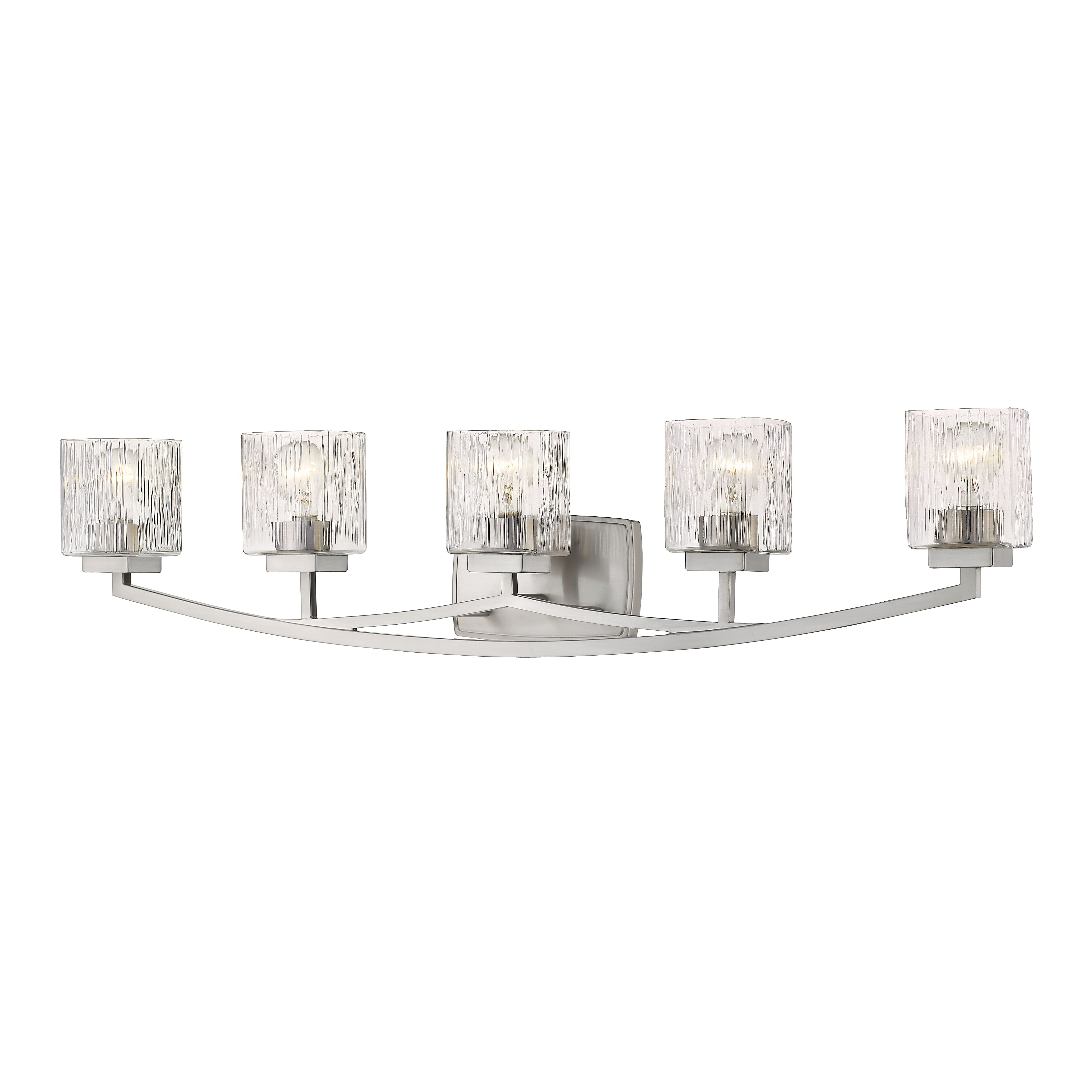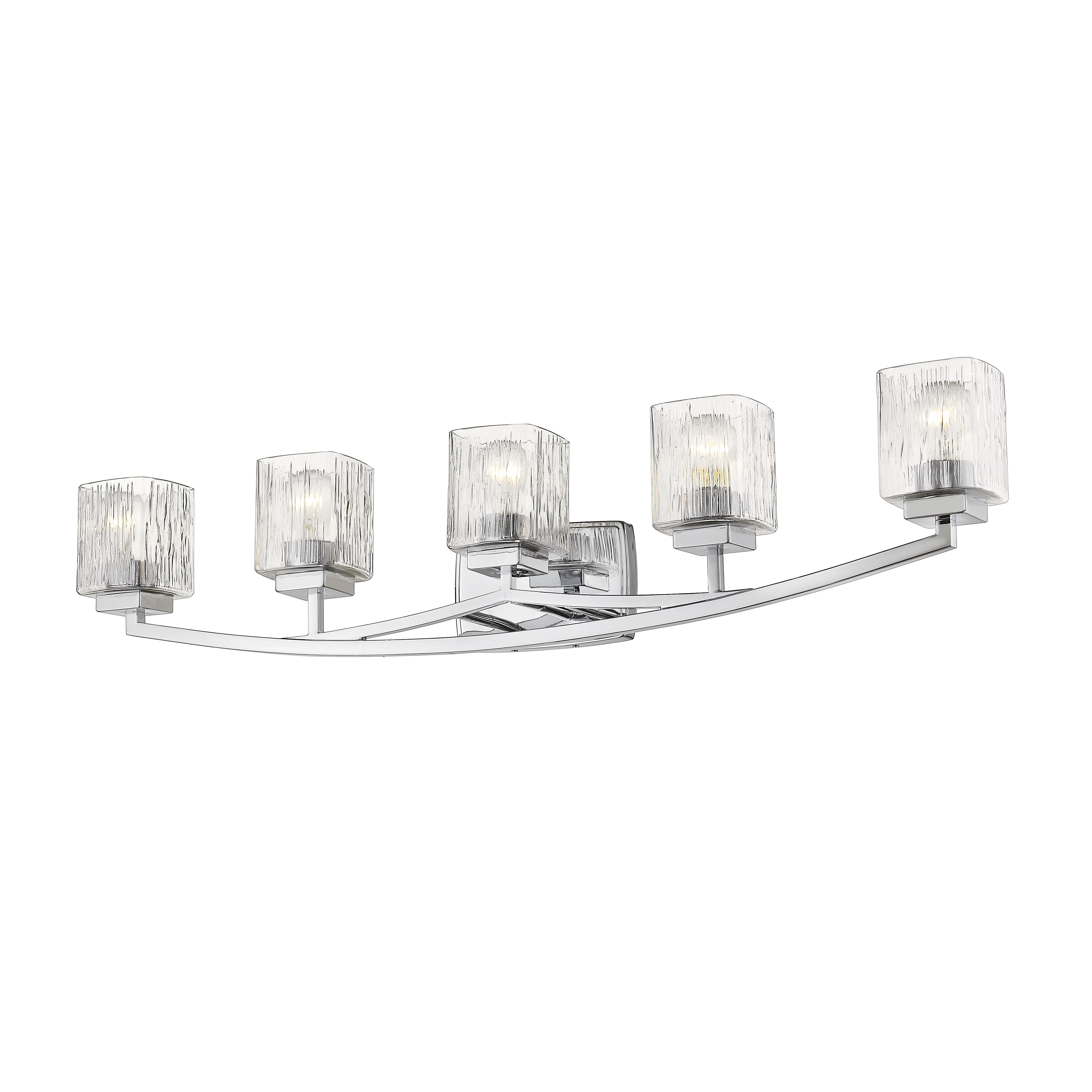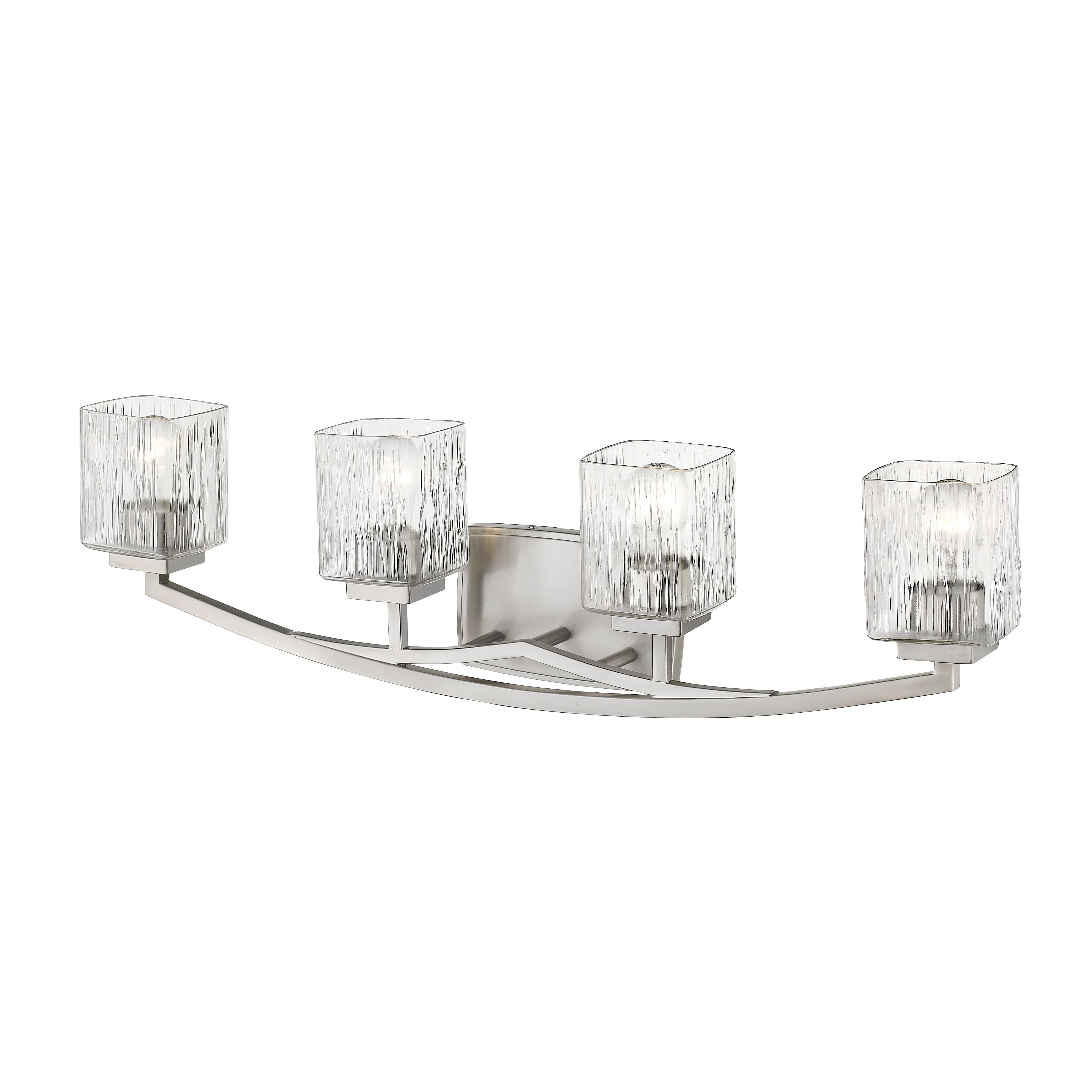 The Zaid collection of contemporary bath fixtures are defined by the gentle curve of the fixture arm paired with the finely variegated detail of the Clear glass shades. These contemporary fixtures are offered in many sizes and a choice finishes which include Bronze, Brushed Nickel, or Chrome.