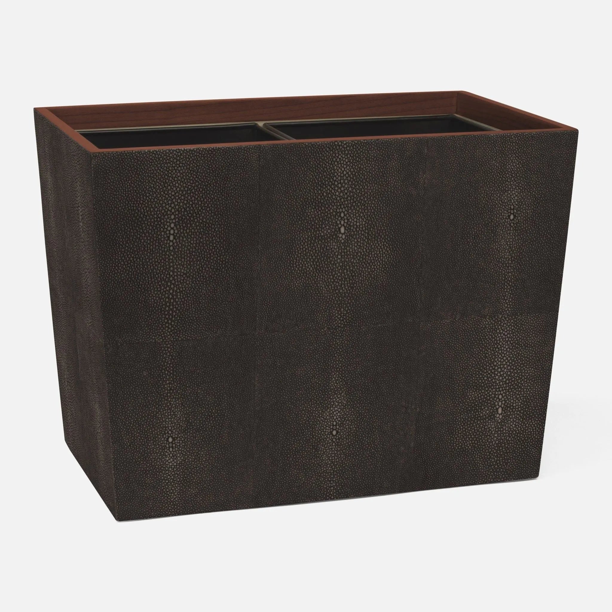 Every piece is crafted to highlight the natural eye pattern inspired by authentic shagreen, and topped with a veneer trim.