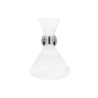 Designers are scooping up our super mod August sconce in matte white for its versatile function and timeless style. Features a streamlined metal shade finished with an adjustable polished nickel detail. Perfect when paired over an entry console or to brighten up a hallway. Shine on!