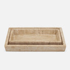 The stone Bowen bath collection celebrates the natural grain and porous texture of travertine material. The stone is filled with clear resin for a smooth finish.