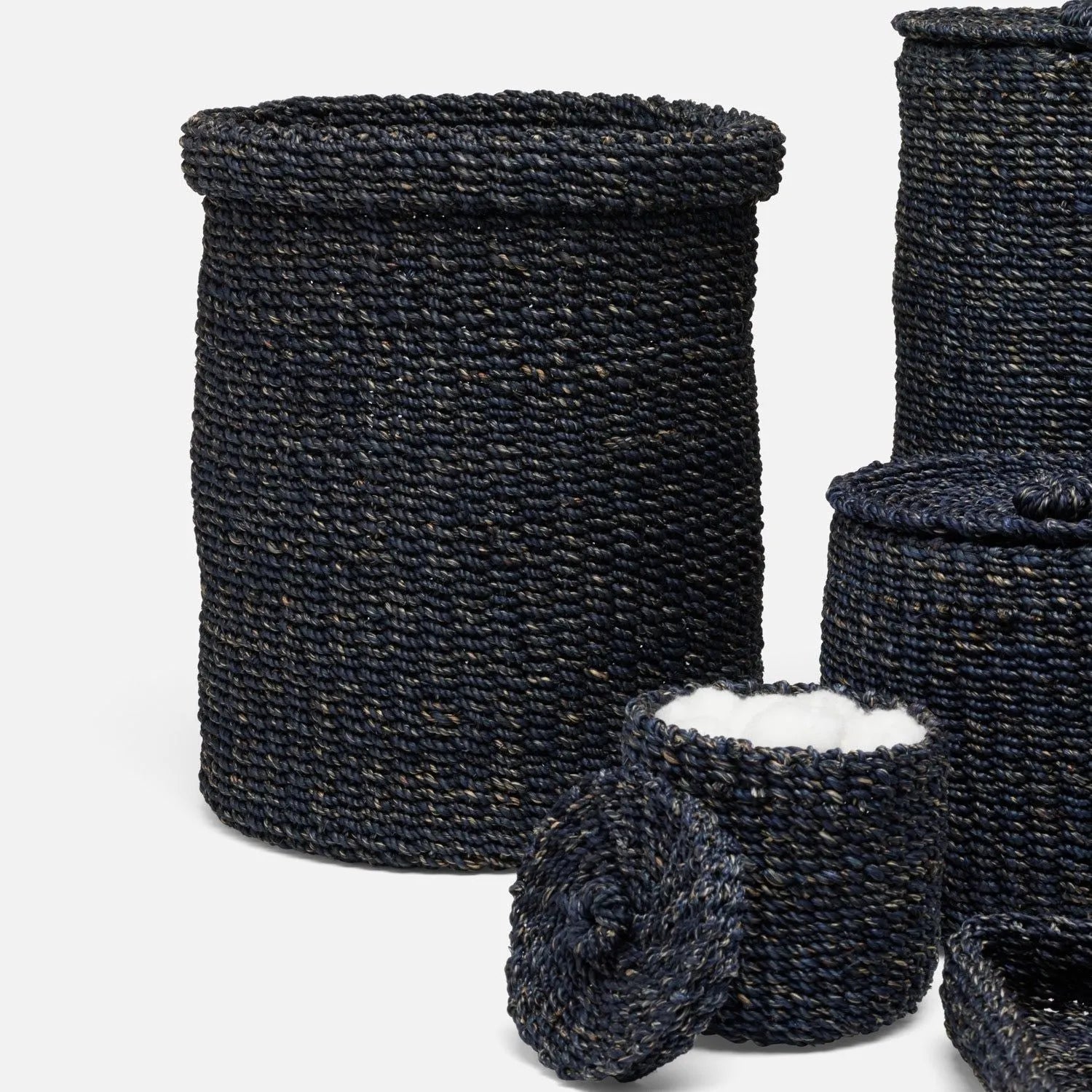Softly structured, abaca fiber bath collection of delicate stitching.