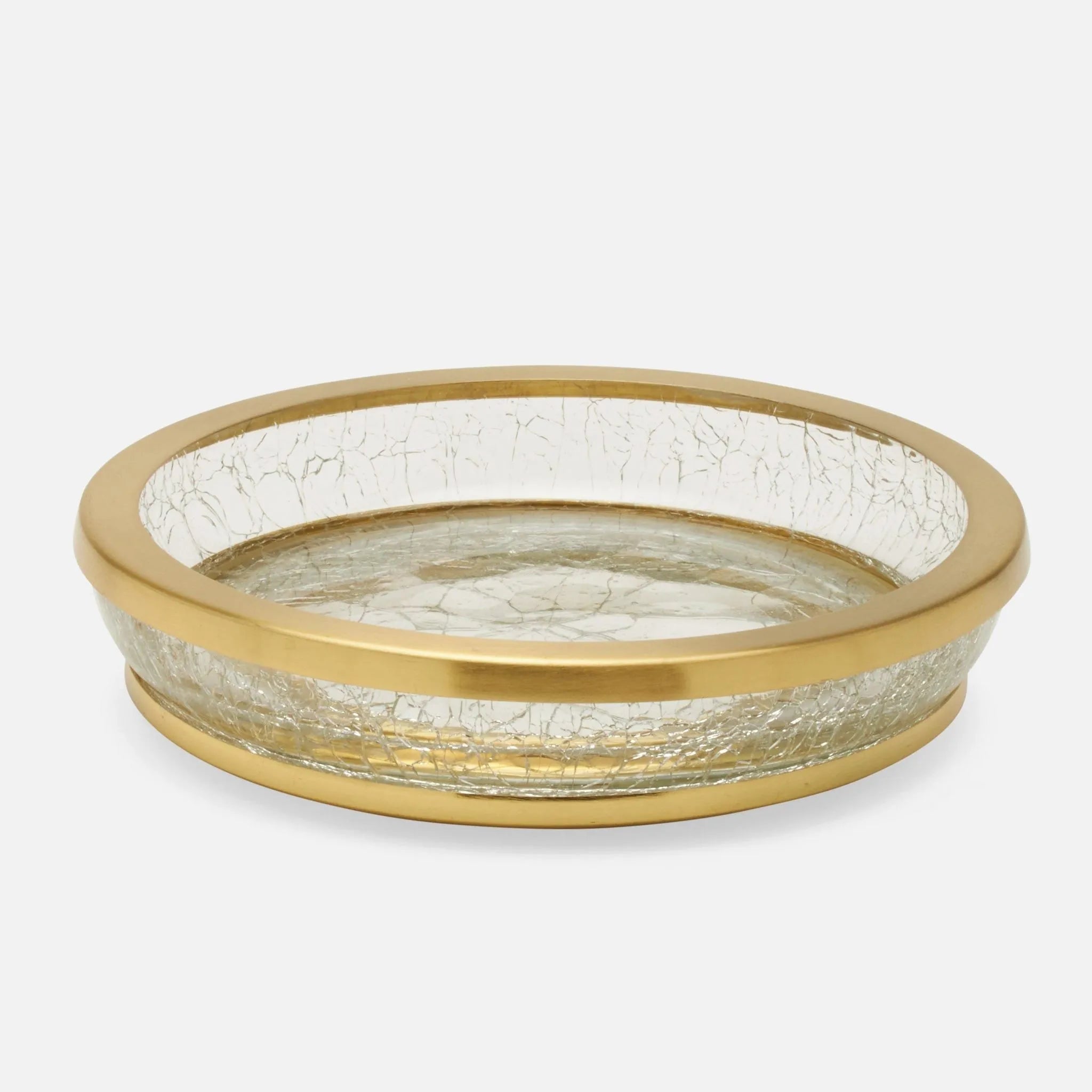 Subtly glamorous, our Pomaria bath collection brightens a bathroom with light-catching crackled glass accented in brushed gold, brushed silver, or dark bronze.