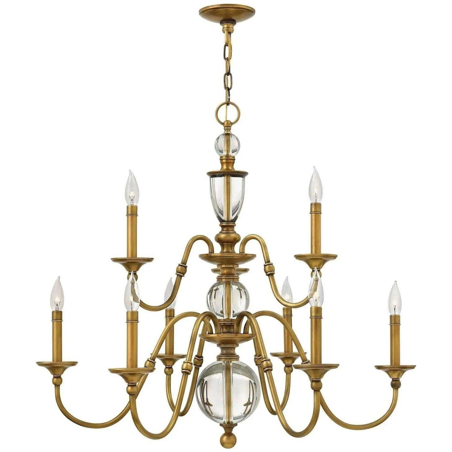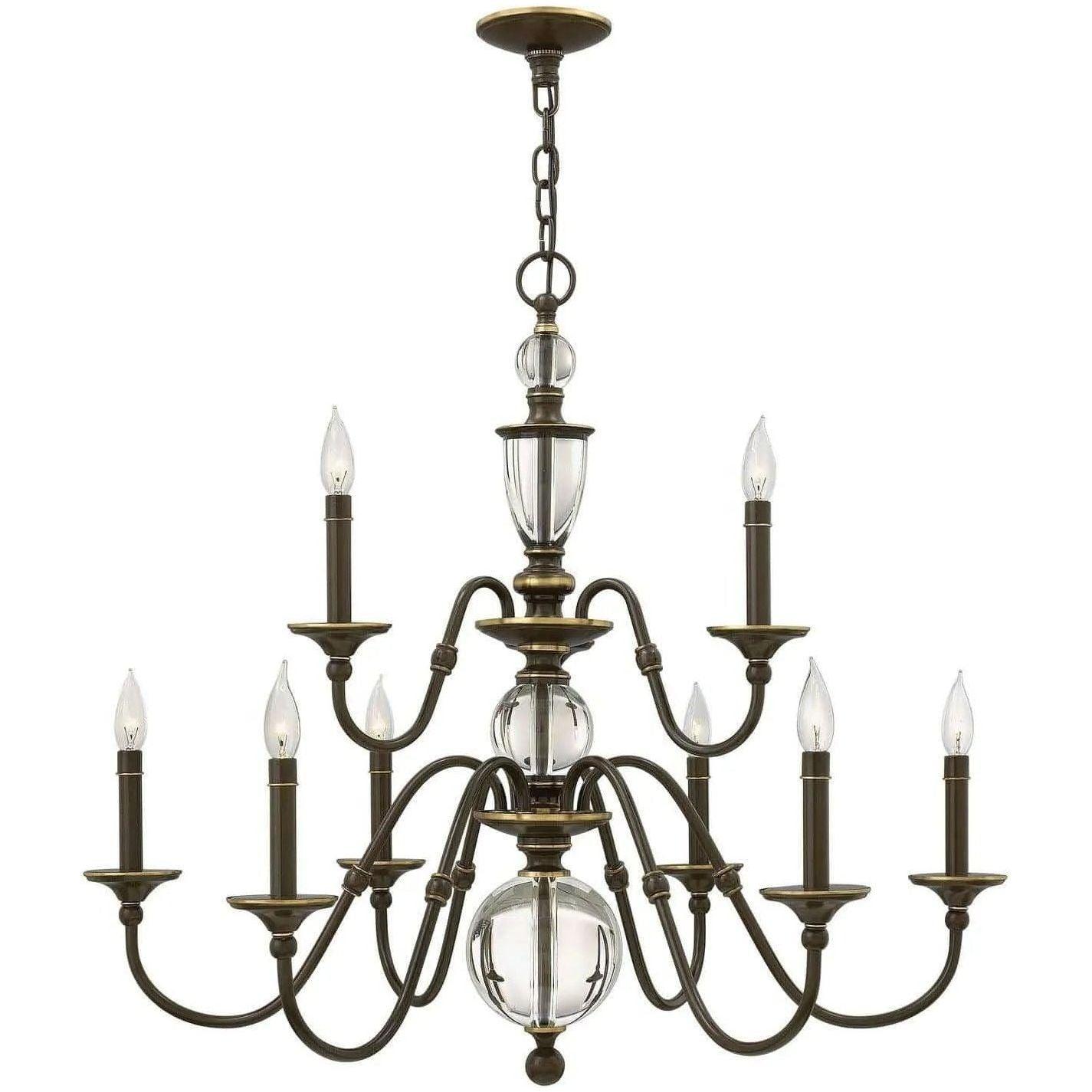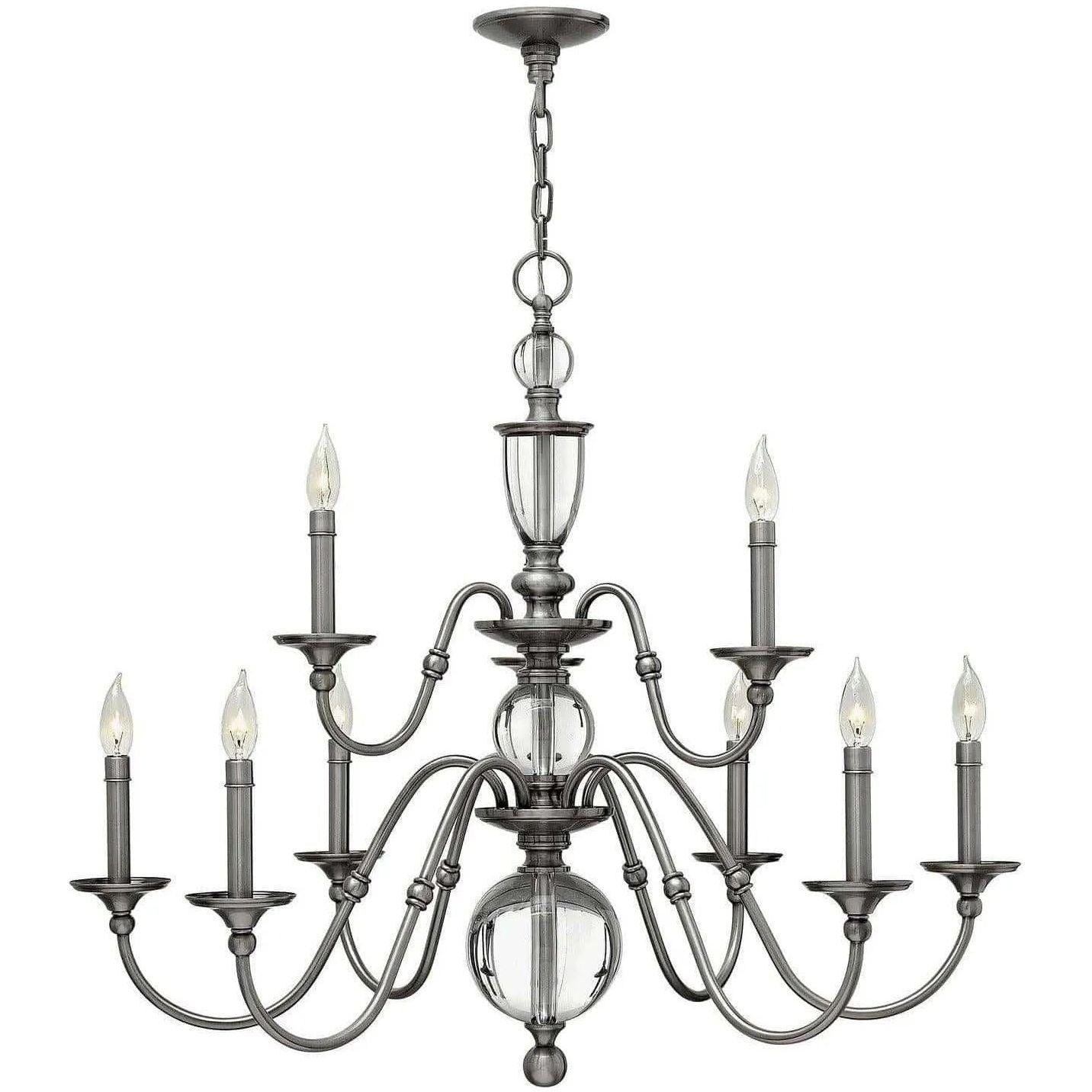 La collection Eleanor propose un arrangement de lustres traditionnels classiques avec des bras gracieux, des virages élégants et des manches de bougies élégantes. Une colonne centrale glamour construite d'éléments cristallins solides transmet une sophistication moderne.