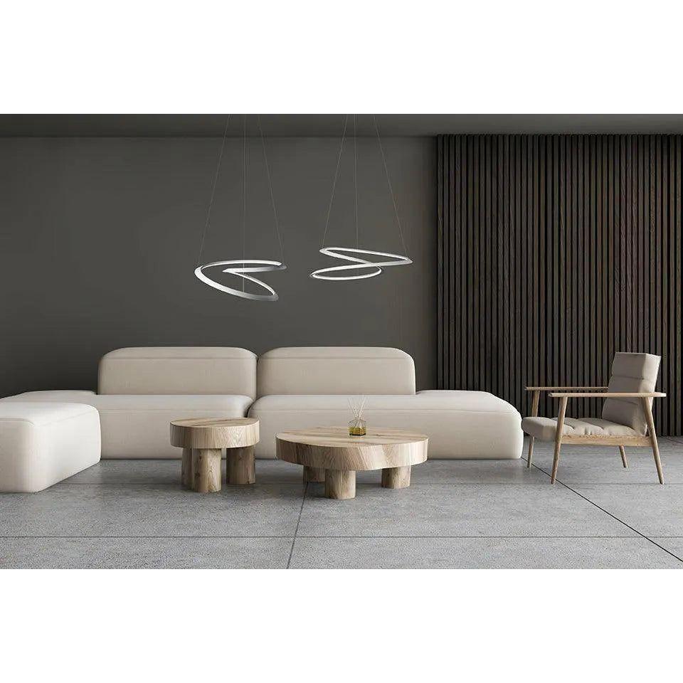 Petite version de la lampe Kepler uniquement avec une lumière en bas. Lampe de suspension en poudre en aluminium extrudé enduit. Versions disponibles en blanc, noir et nouvelle finition dorée. La ligne continue est faite par un processus tridimensionnel d'aluminium extrudé, conçu sur la base du principe géométrique de la bande de Moebius. Organisé par Nemo.