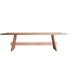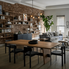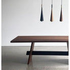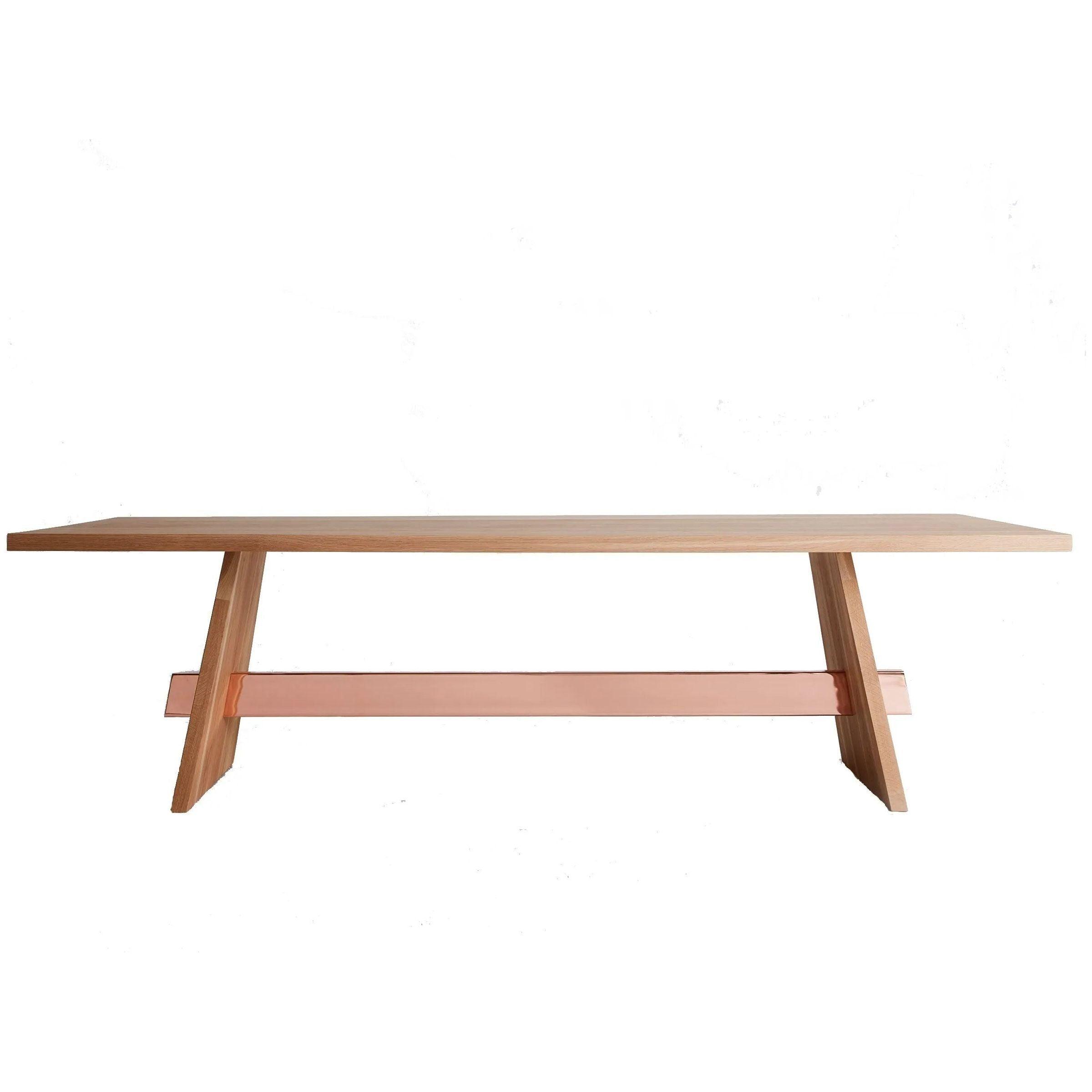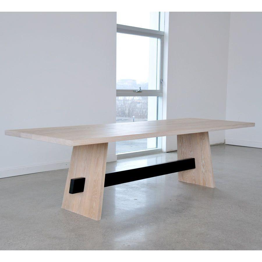 La table à manger de l'isthme est nommée d'après une étroite bande de terre avec la mer de chaque côté, une géographie naturelle qui se produit avec une puissante présence visuelle. En abstraction de la forme susmentionnée, le tableau de l'isthme est né. La table en bois massif ajoute de l'importance à n'importe quelle pièce où elle repose. Une autre caractéristique esthétique est le chevalet en métal poli qui s'étend entre les jambes de cette table élégante, qui ajoute une texture plus lisse contrairement au grain de bois de la table.
