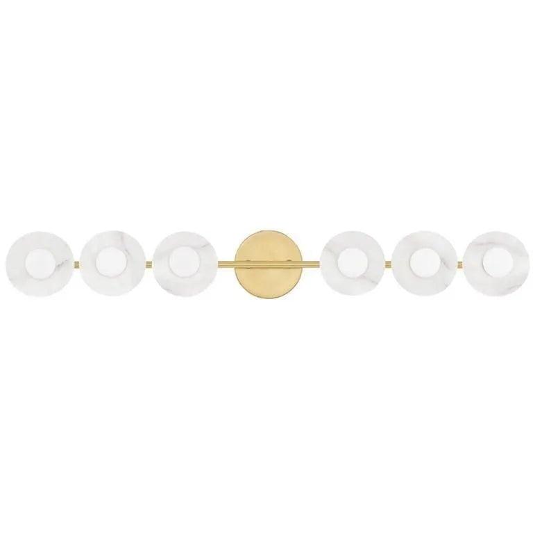 Une barre de bain qui introduit une élégance sérieuse dans une conception simple en fixant des disques d'albâtre comme des feuilles contre chaque diffuseur, les accents d'Elmont de drame infuse dans le bain. Veuillez noter: chaque morceau d'albâtre est unique, contenant son propre caractère avec des motifs de veine naturelle. En conséquence, nous ne pouvons garantir que chaque pièce correspondra.