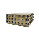 Our exquisite, rectangle box is perfect for all your tabletop treasures! Finished in on-trend brass with resin appliques, Alba brings a distinctive, luminous style to any display surface.