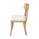 Inspired by one of the first and most iconic furniture designs in history, our Britta dining chair is a modern rendition of the classic Greek klismos chair. Pairing an elegant cerused oak finish with a pristine white linen seat, its curved back with natural woven cane detail wraps you in comfort. Britta is the very definition of casual elegance.