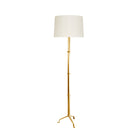Sitting solidly on three beautifully silvered legs, the modern Alvaro pennyfoot floor lamp stands tall in any room. Durable iron base finished in brilliant gold leaf and topped with a lovely cream silk shade.