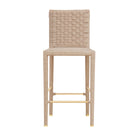 The Burbank bar stool showcases a hand strung basket weave pattern with elegant antique brass foot caps. The intertwining natural rope creates a luxurious feast of textures and patterns. Designed exclusively for indoor use only, the Burbank bar stool beckons you to enjoy delightful meals with loved ones while comfortably seated in this hand woven stunner.