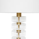 The Cybill brushed brass finish blends seamlessly with the modernity of stacked acrylic to create a visually captivating contrast that catches the eye. Topping the lamp is a crisp white linen shade which provides a soft and diffused glow. With its perfect proportions and meticulous attention to detail, the Cybill BBR table lamp is an artistic focal point that complements a range of décor styles.